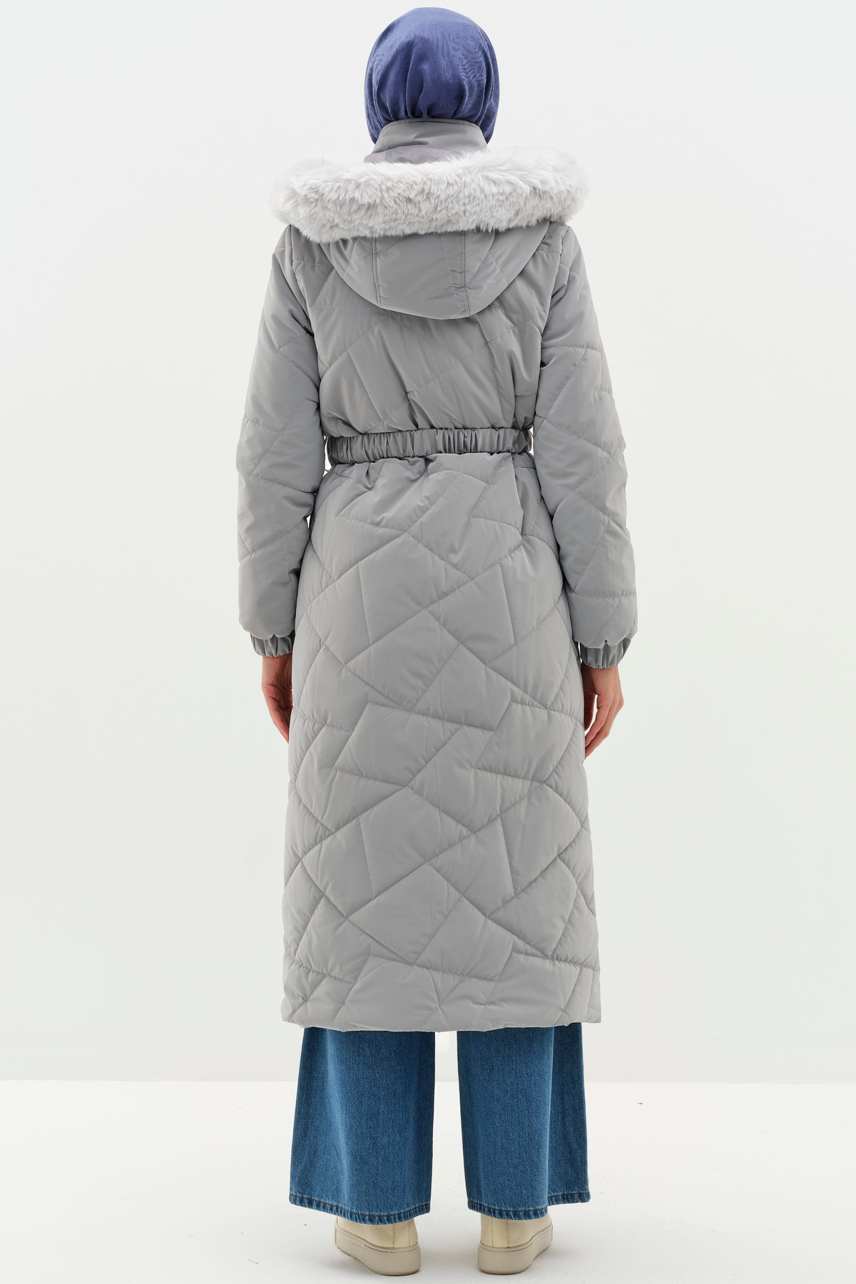 Yırtmaç Detaylı Kapüşonlu Kapitone Manto - Gri Yırtmaç Detaylı Kapüşonlu Kapitone Manto - Gri 242MT67076TB.1-05 48