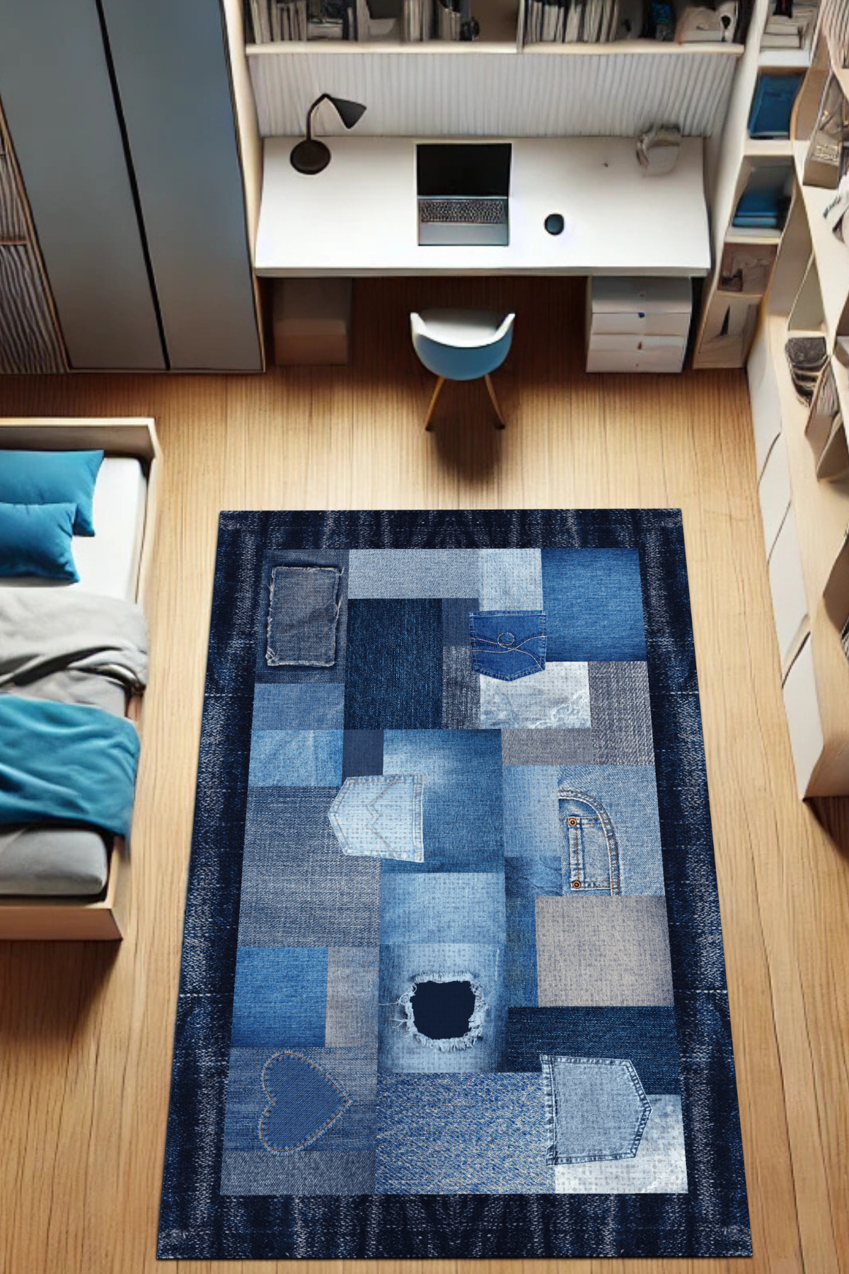 Patchwork Jean Halı Dijital Baskı Oturma Odası Halısı Lacivert Denim Görünümlü Yazlık Halısı Patchwork Jean Halı Dijital Baskı Oturma Odası Halısı Lacivert Denim Görünümlü Yazlık Halısı BJ001 200 x 300