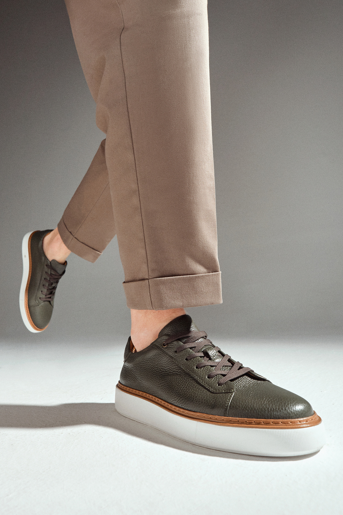 Erkek Siyah Bağcıklı Deri Sneaker 25SFD610518 Erkek Siyah Bağcıklı Deri Sneaker 25SFD610518 45