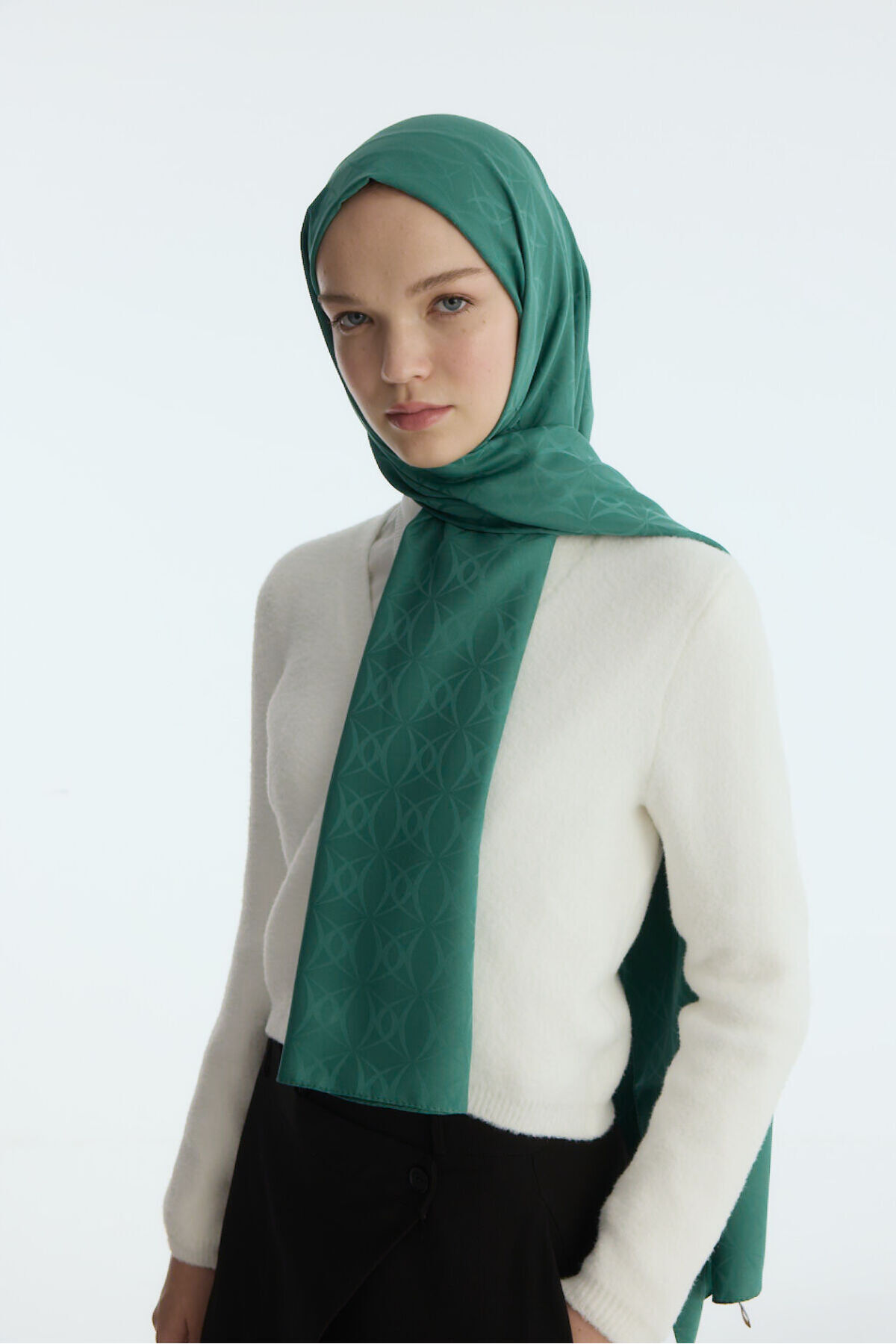 İpeksi Jakar Geometrik Desen Şal - Açık Zümrüt İpeksi Jakar Geometrik Desen Şal - Açık Zümrüt 2 Tek Ebat