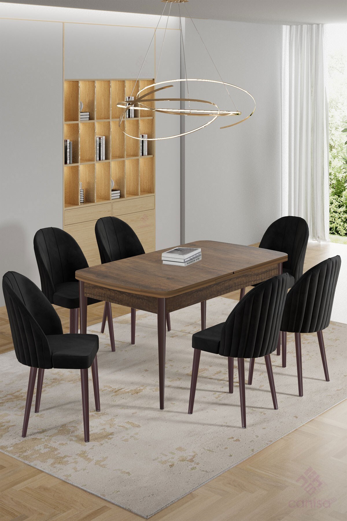 Enya Serisi 80x132 Açılabilir Barok Ahşap Desen Masa Takımı ve 6 Cappucino Sandalye Enya Serisi 80x132 Açılabilir Barok Ahşap Desen Masa Takımı ve 6 Cappucino Sandalye TR2-ENYA01MARA06BRK تک سایز