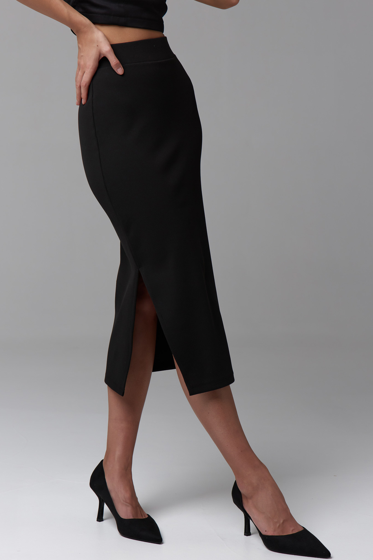 Kadın Siyah Antrasit Yırtmaçlı Midi Etek Kadın Siyah Antrasit Yırtmaçlı Midi Etek MJE304 2XL