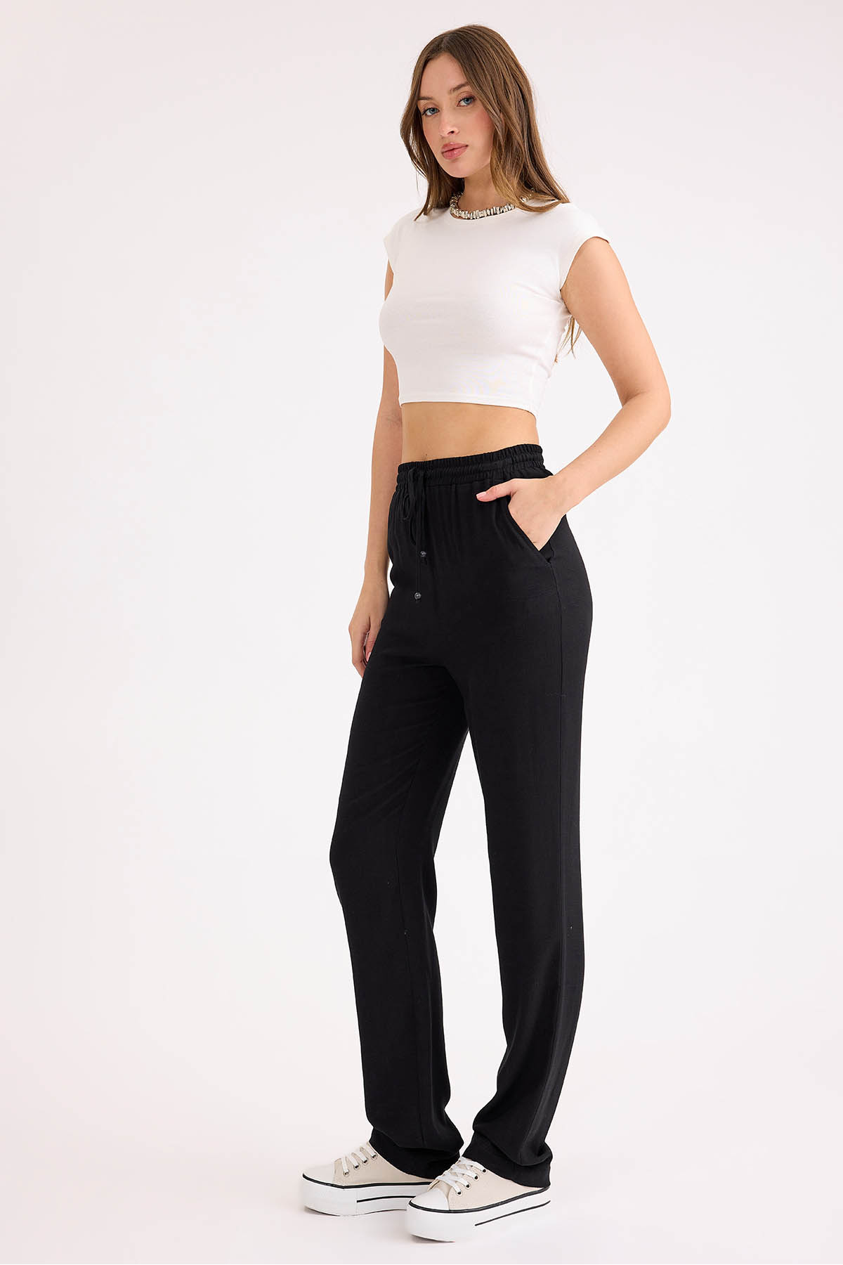 Beli Bağcıklı Viskon Keten Pantolon Beli Bağcıklı Viskon Keten Pantolon TYCA15D36D58025000 XL