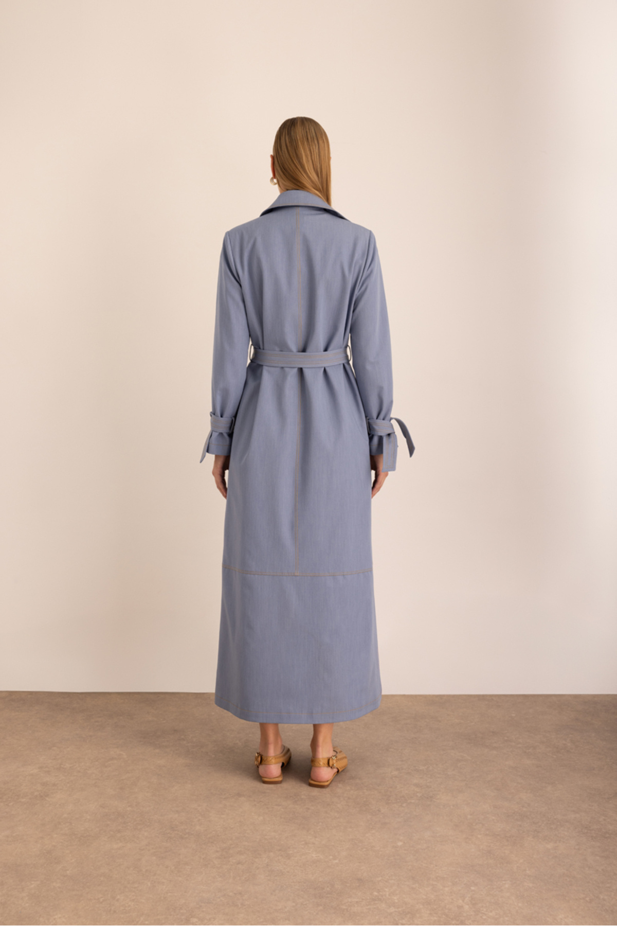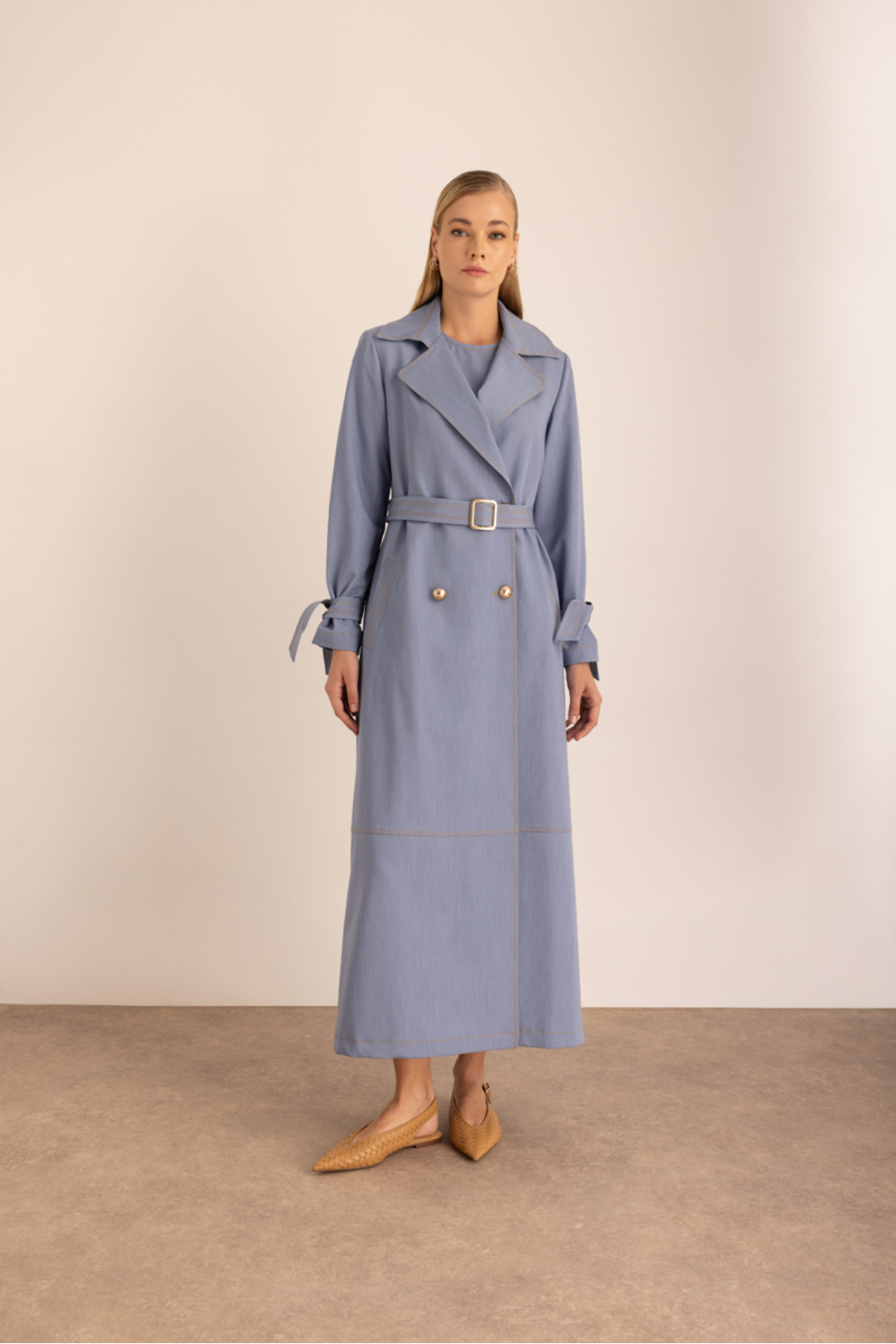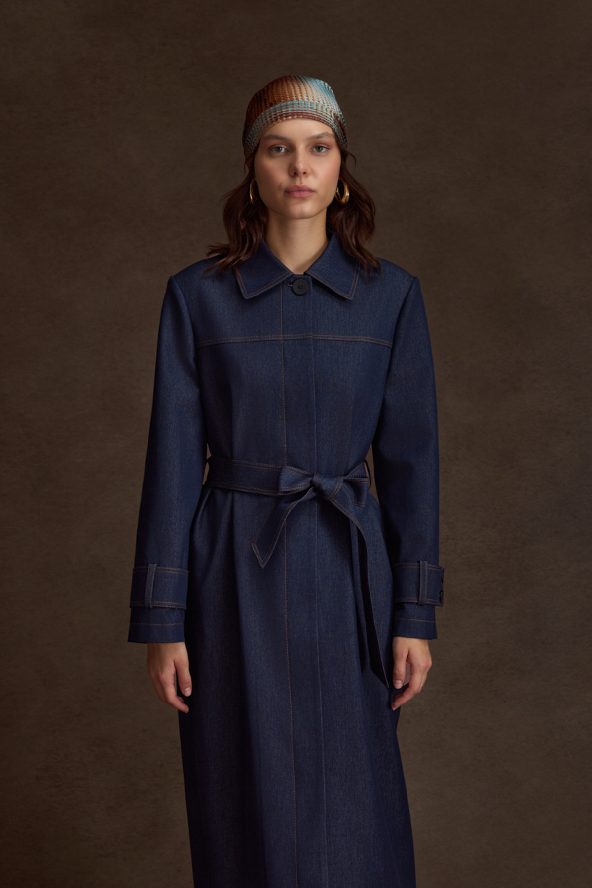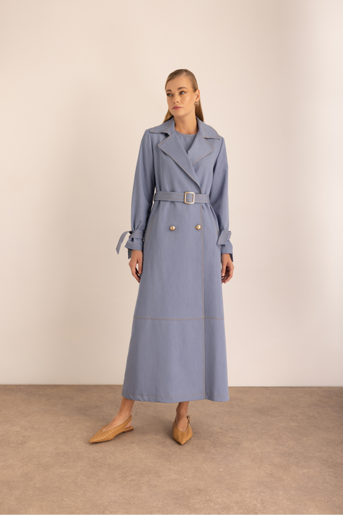 İndigo Kemerli Kruvaze Kapamalı Trençkot İndigo Kemerli Kruvaze Kapamalı Trençkot 25SS04316111 44