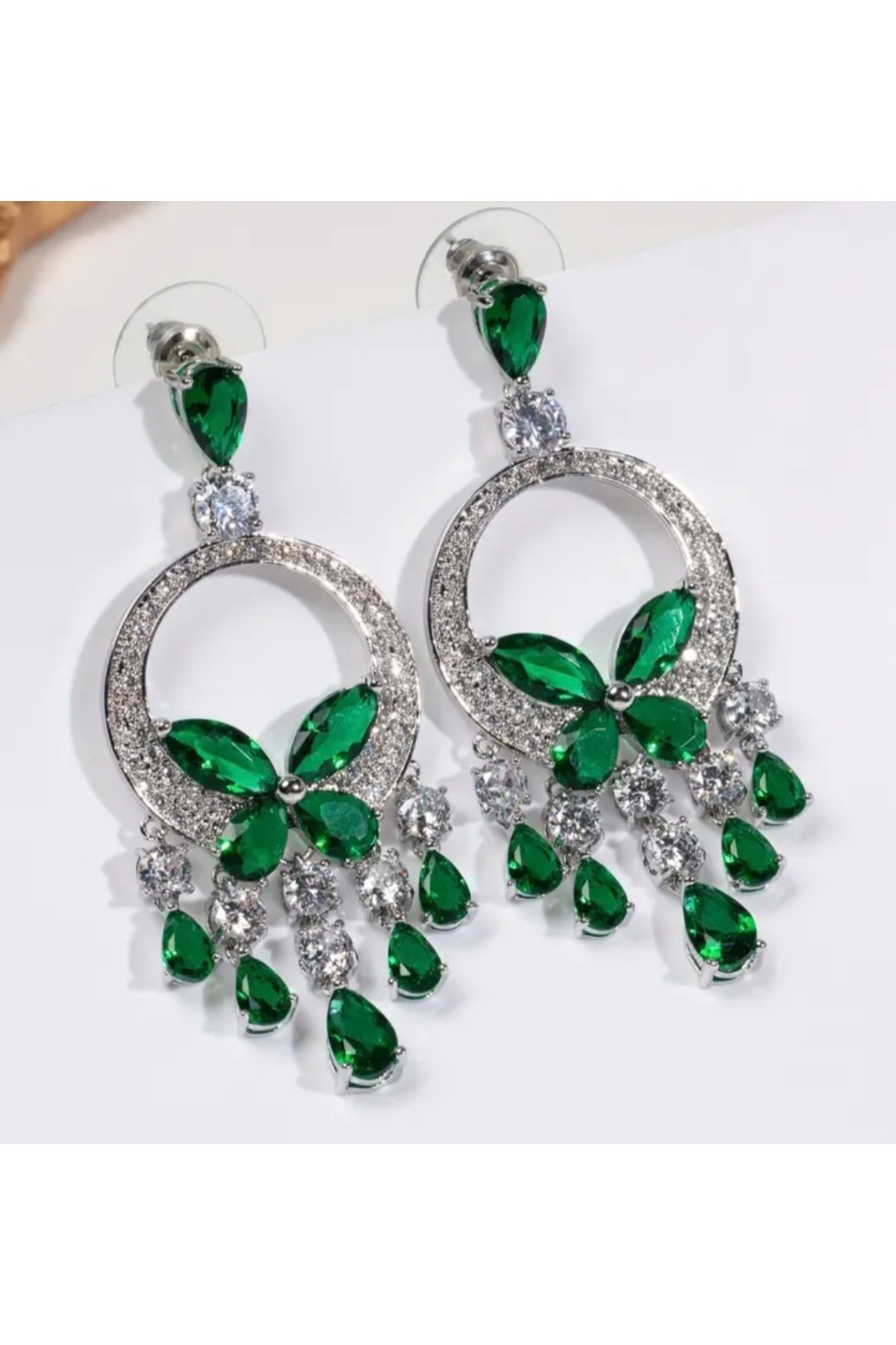 Gümüş Renkli Uzun Sallantılı Yeşil Taşlı Şık Nişan Kına Düğün Abiye Küpe Gümüş Renkli Uzun Sallantılı Yeşil Taşlı Şık Nişan Kına Düğün Abiye Küpe MHRS3810183858295 M