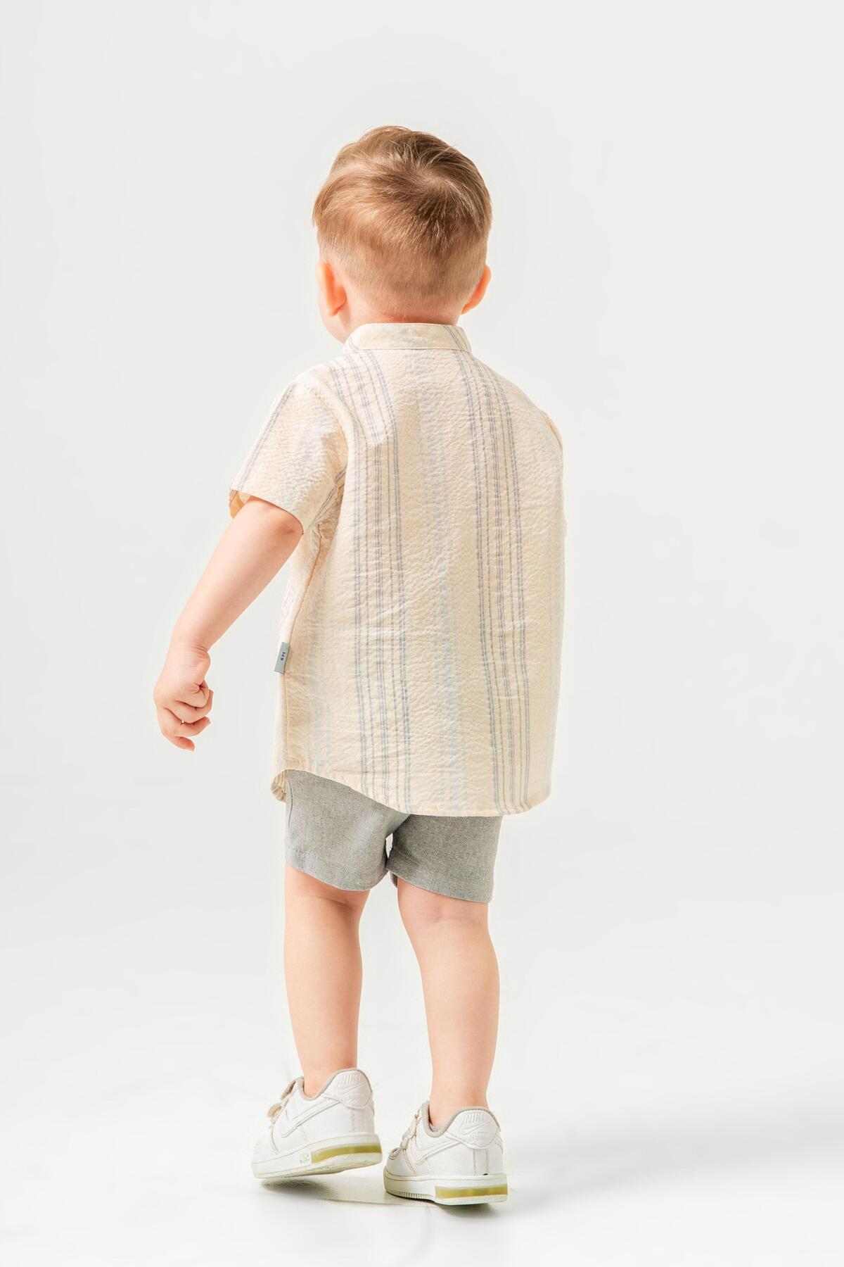 Tarz Gömlek Çizgi Desenli Belden Ayarlanabilir Kısa Kollu Şortlu 2'li Takım Çocuk ve Bebek Giyim Öze Tarz Gömlek Çizgi Desenli Belden Ayarlanabilir Kısa Kollu Şortlu 2'li Takım Çocuk ve Bebek Giyim Öze 65165 18-24 AY