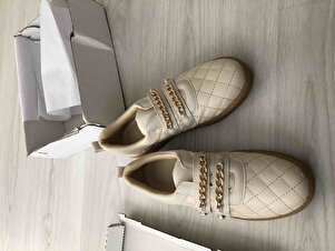 Kadın Sneaker Rahat Zincir ve İnci Detaylı Cırtlı Spor Ayakkabı Bej Kadın Sneaker Rahat Zincir ve İnci Detaylı Cırtlı Spor Ayakkabı Bej 001335 40
