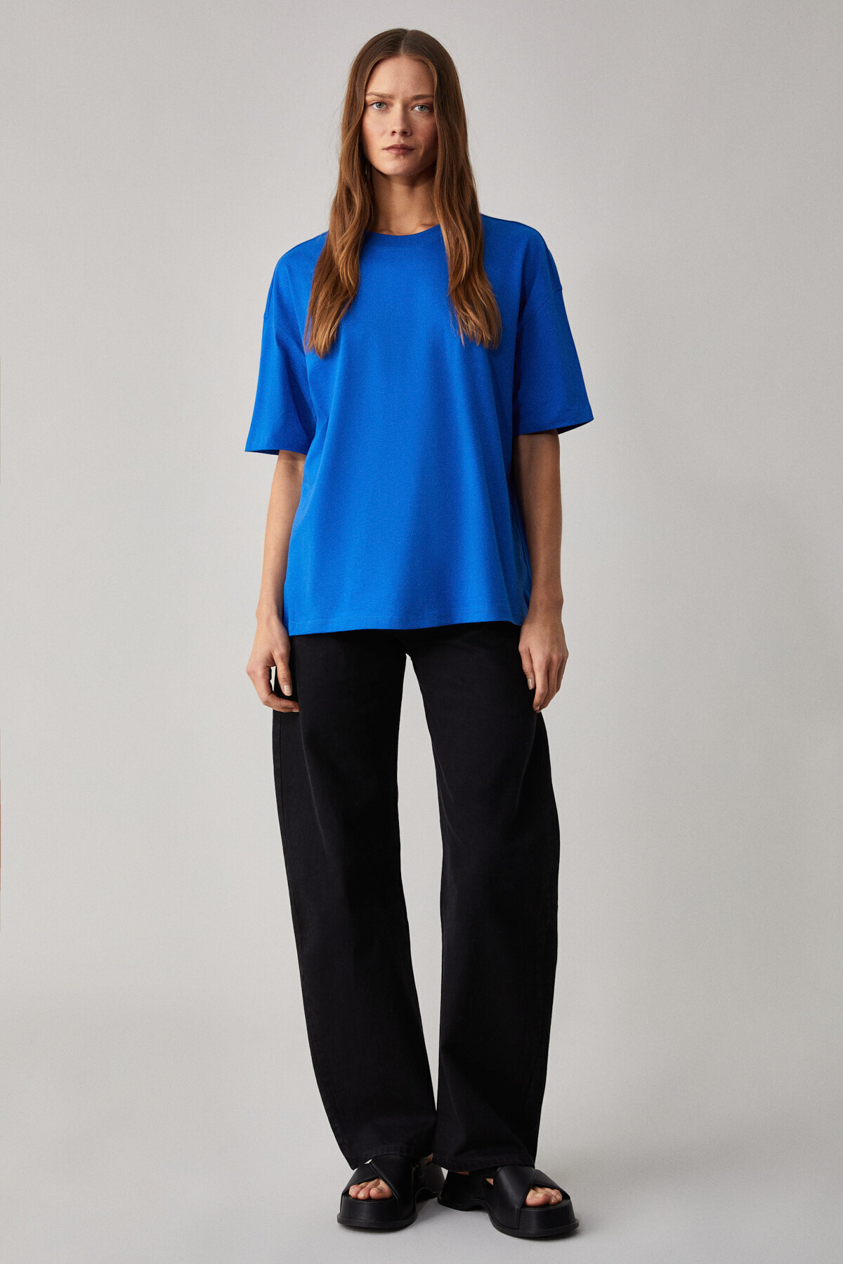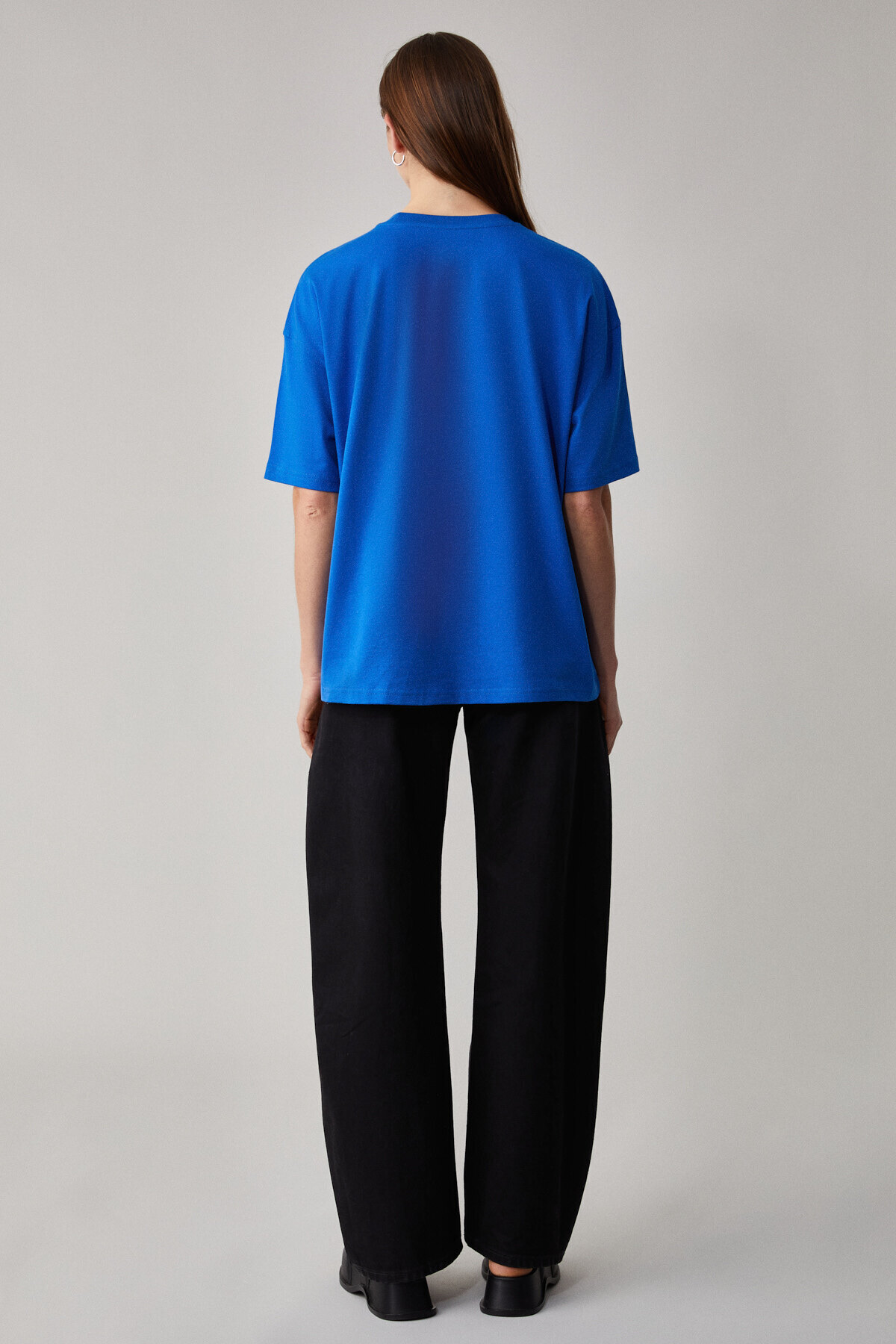 LAGERTHA Kadın %100 organik Pamuklu Kalın Dokulu Oversize Fit Yuvarlak Yakalı Mavi T-Shirt LAGERTHA Kadın %100 organik Pamuklu Kalın Dokulu Oversize Fit Yuvarlak Yakalı Mavi T-Shirt LAGERTHA01102024 XL