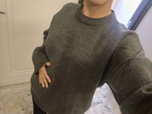 Antrasit Bisiklet Yaka Oversize Kadın Triko Kazak Antrasit Bisiklet Yaka Oversize Kadın Triko Kazak sparkovrsz33 XL