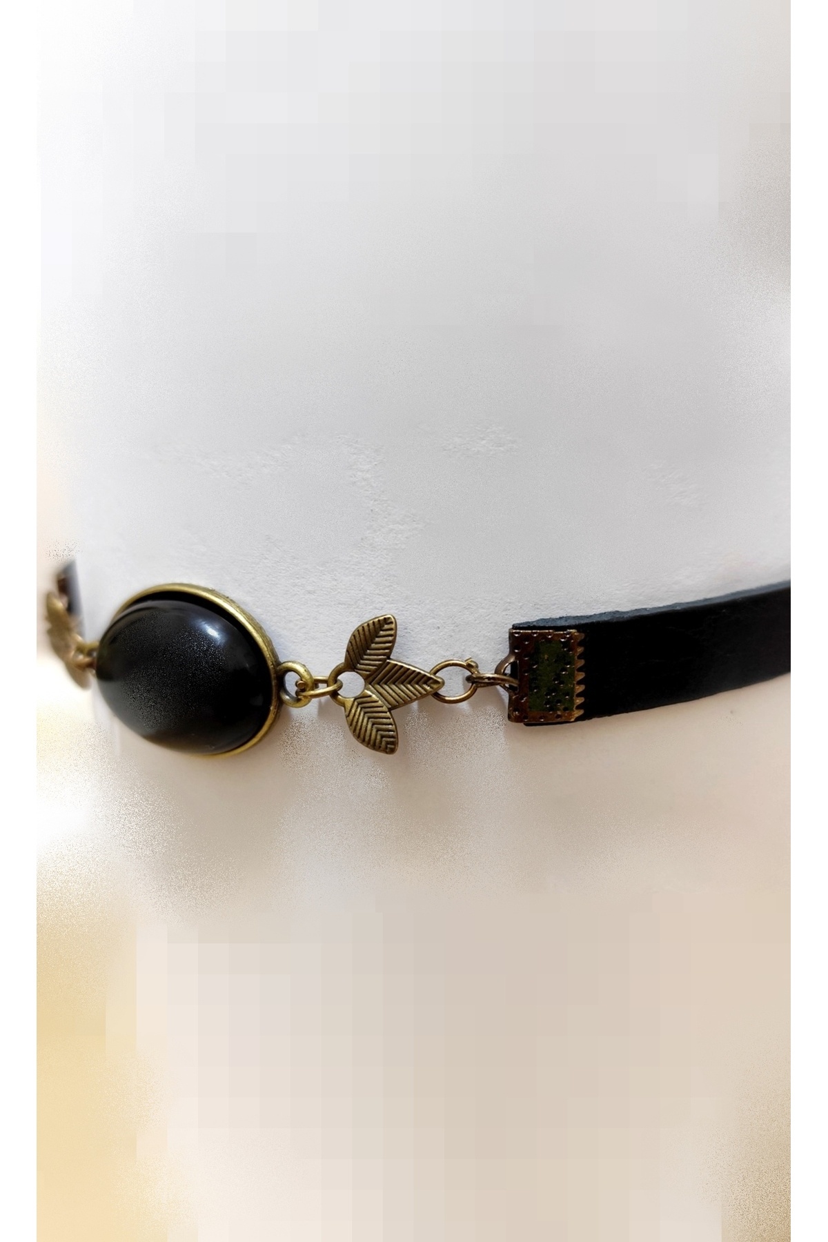 Siyah Deri Doğal Taşlı Choker Kolye Siyah Deri Doğal Taşlı Choker Kolye LADYTR0081 تک سایز