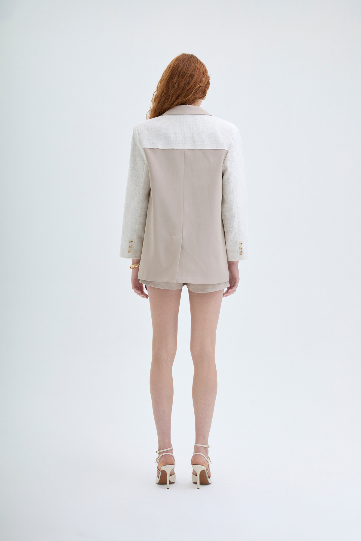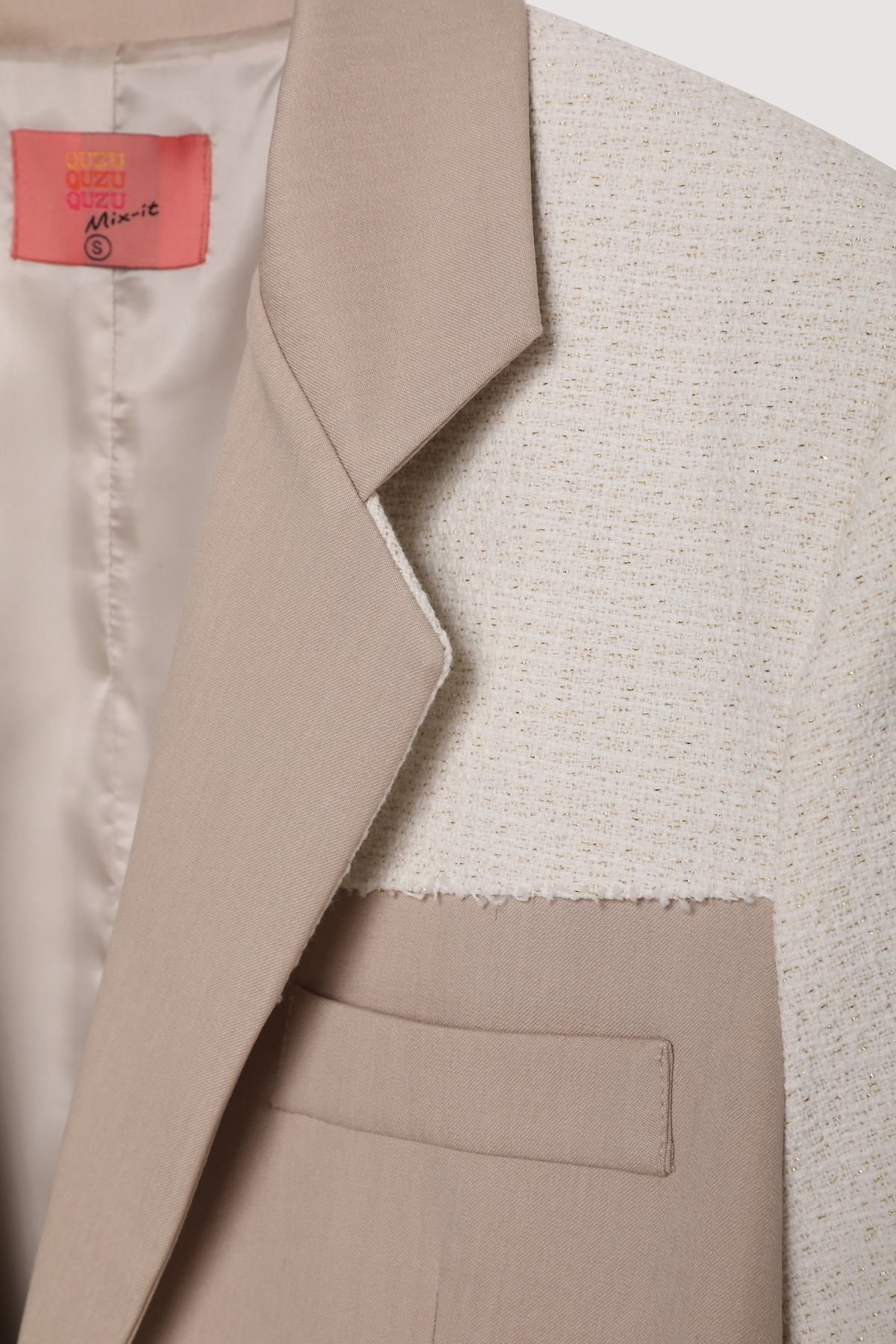 Kruvaze Yaka Dokulu Matchli Blazer Ceket Bej Kruvaze Yaka Dokulu Matchli Blazer Ceket Bej 25YCKT00010 L