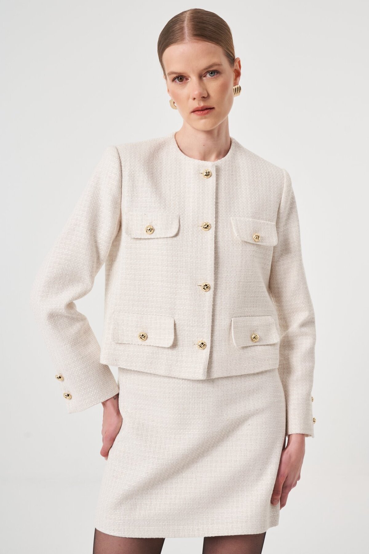 Gold Düğme Detaylı Tüvit Ceket Gold Düğme Detaylı Tüvit Ceket K25111614355070 XL