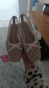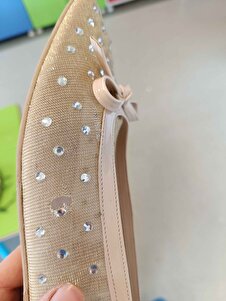 Hera Dantel Detaylı Gümüş Pul İşlemeli Fiyonklu Kadın Babet- BEJ Hera Dantel Detaylı Gümüş Pul İşlemeli Fiyonklu Kadın Babet- BEJ 0190 40
