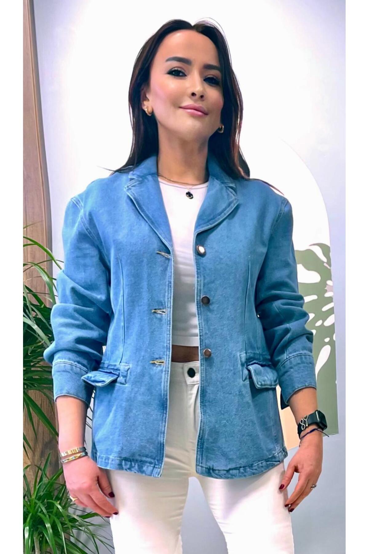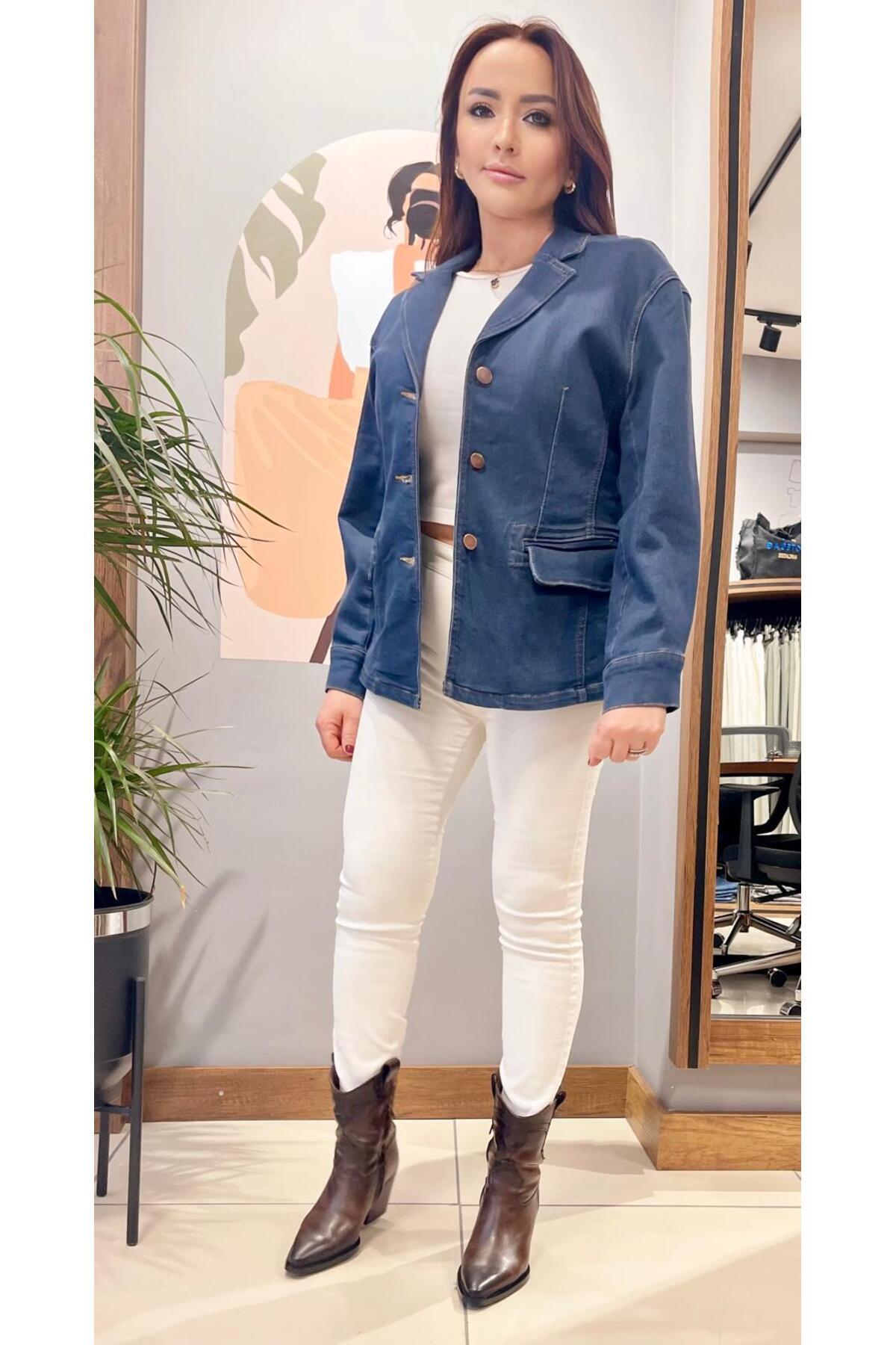 Mevsimlik Düşük Omuz Regular Fit Blazer Kot Ceket. Mevsimlik Düşük Omuz Regular Fit Blazer Kot Ceket. AR-CKT27AL 42
