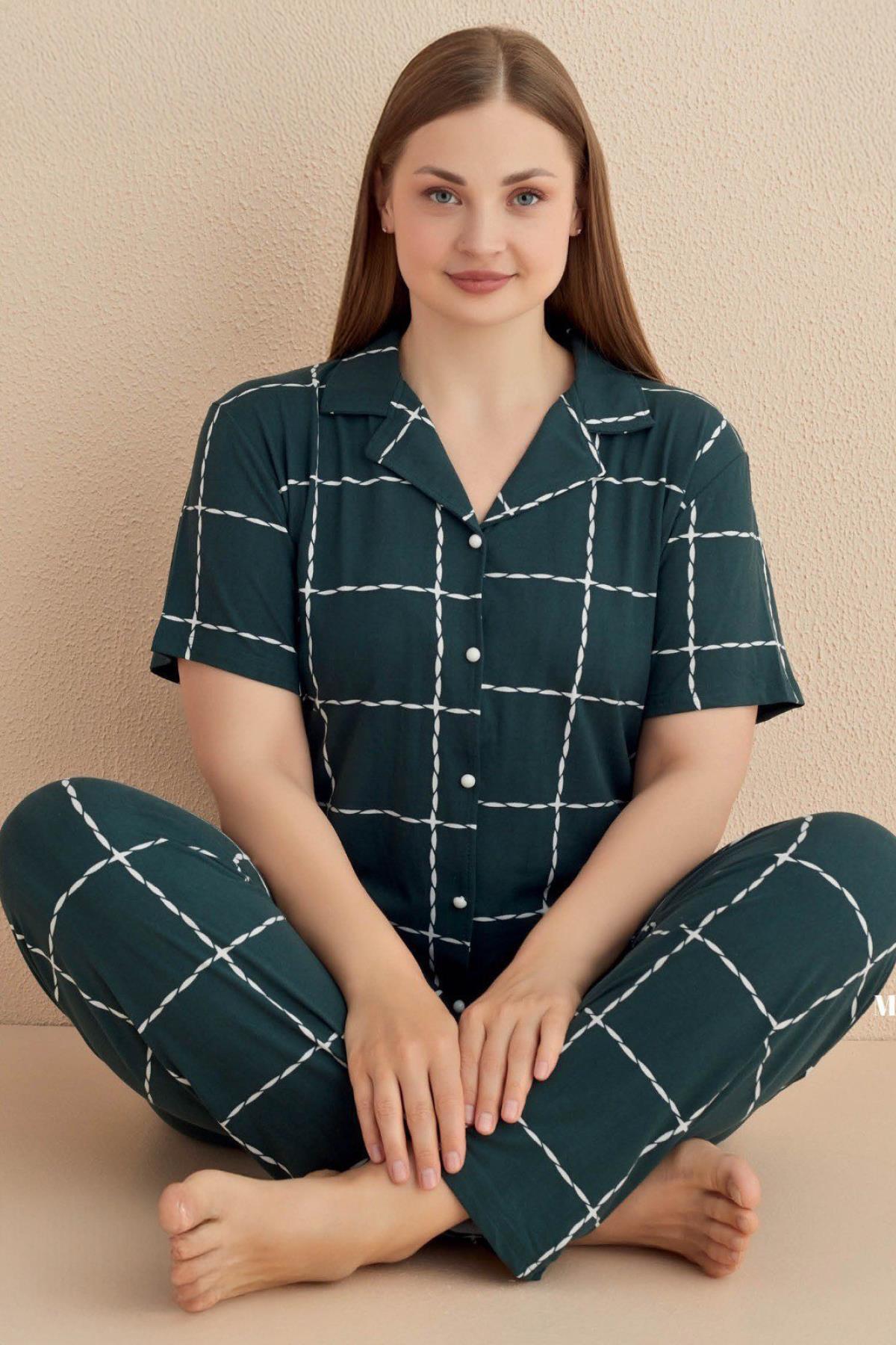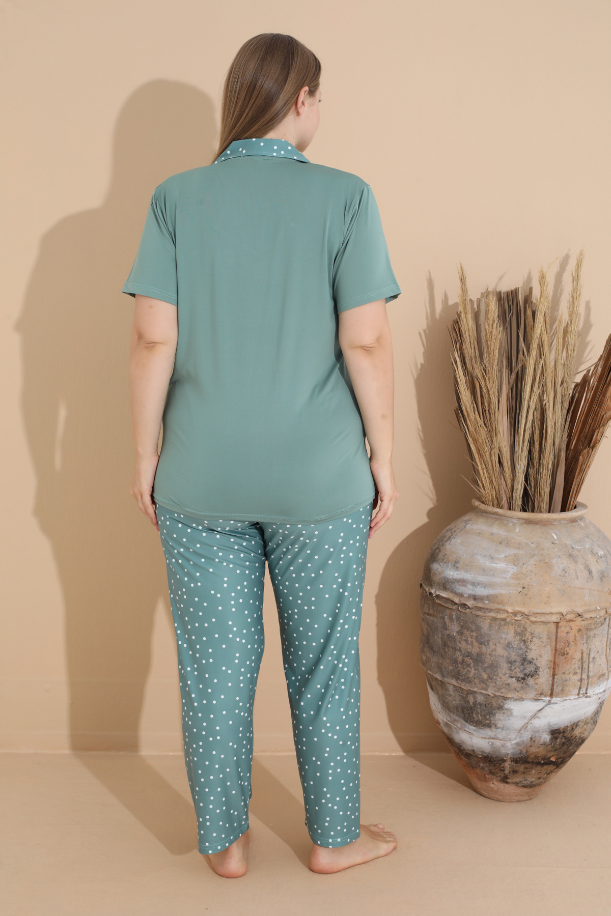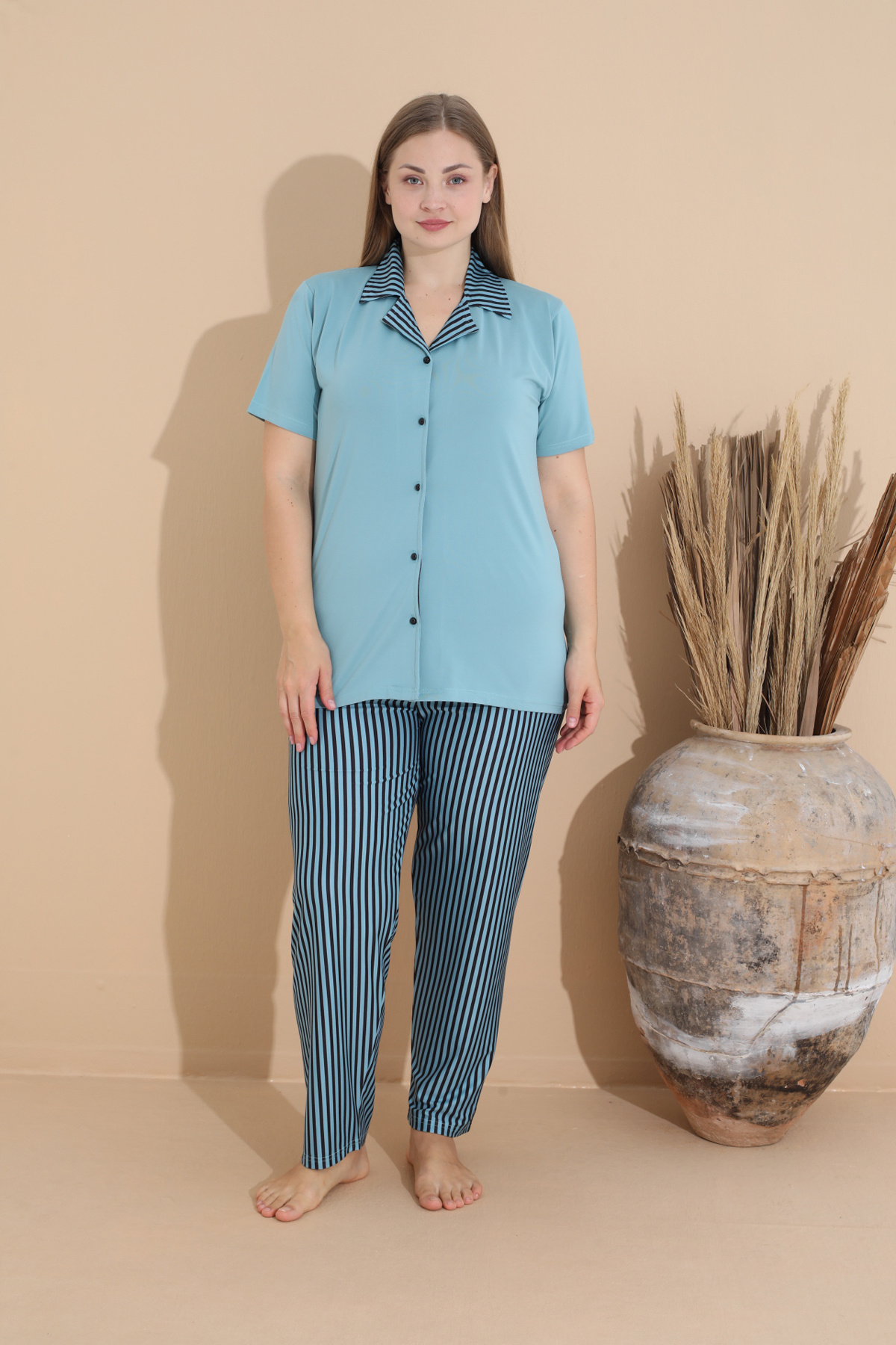 Yumuşak Dokulu Milan Kumaş Önden Düğmeli Büyük Beden Kadın Pijama Takımı 11280 Yumuşak Dokulu Milan Kumaş Önden Düğmeli Büyük Beden Kadın Pijama Takımı 11280 SB11280 4XL