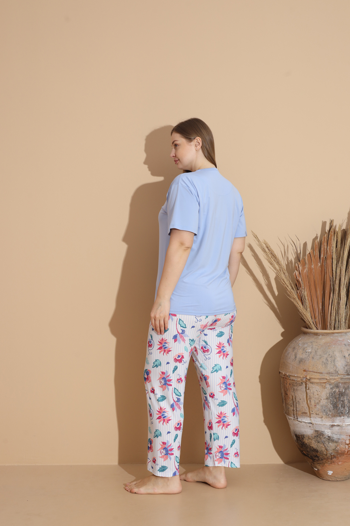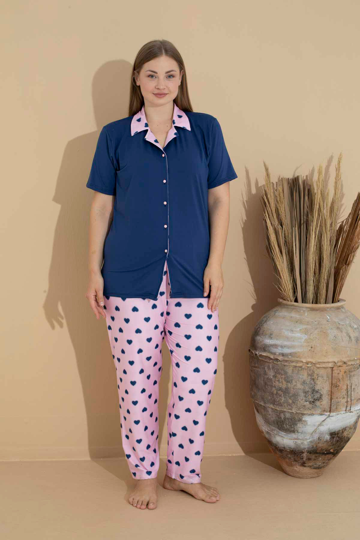 Yumuşak Dokulu Milan Kumaş Kısa Kollu Büyük Beden Kadın Pijama Takımı 20100 Yumuşak Dokulu Milan Kumaş Kısa Kollu Büyük Beden Kadın Pijama Takımı 20100 SB20100 5XL
