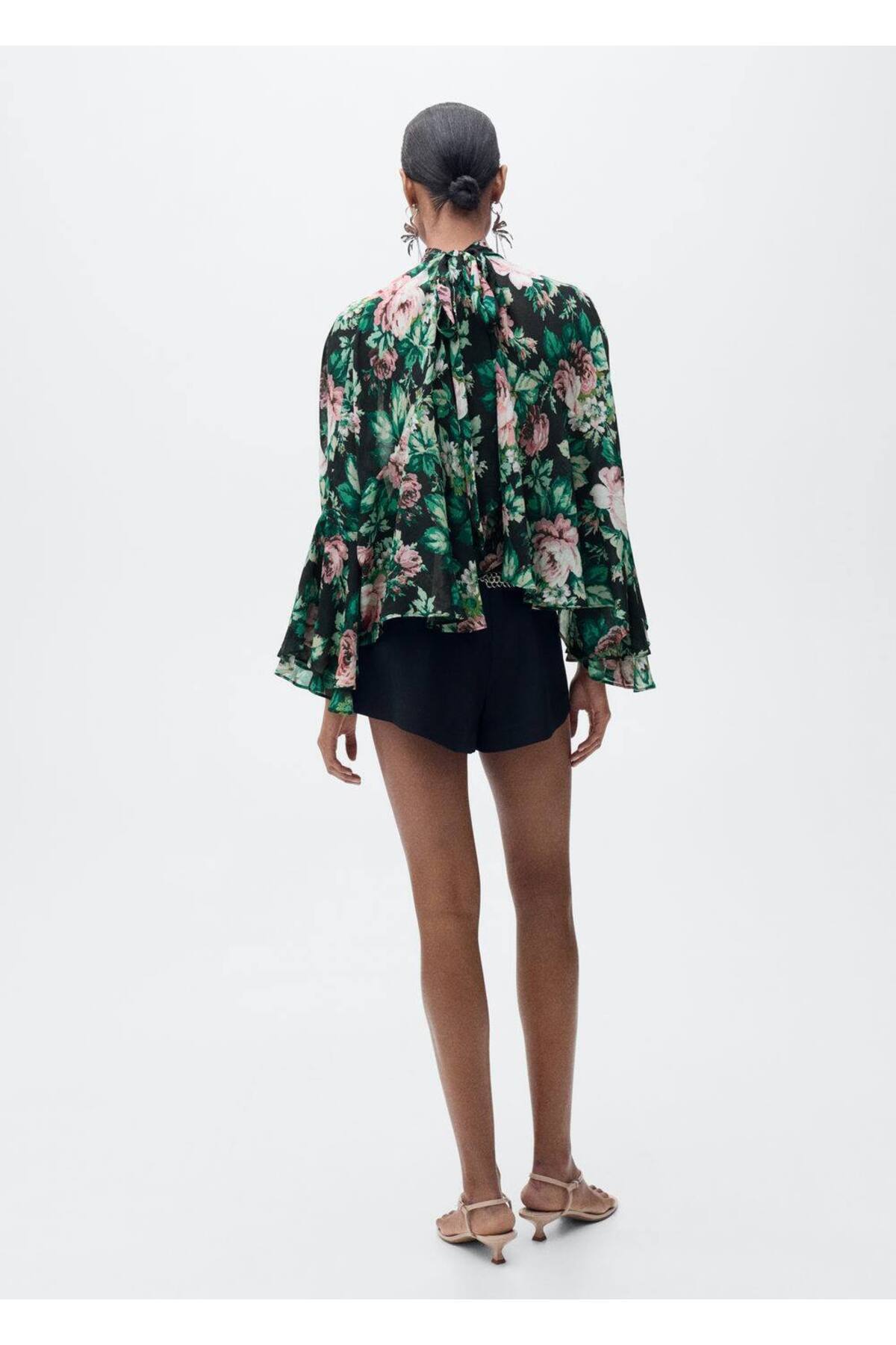 Çiçek desenli yüksek yaka bluz Çiçek desenli yüksek yaka bluz 87055993 L