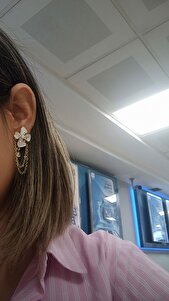 Beyaz Zincirli Çiçek Küpe Beyaz Zincirli Çiçek Küpe 25B135 تک سایز
