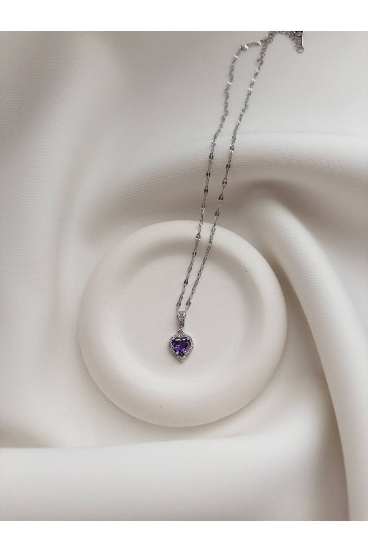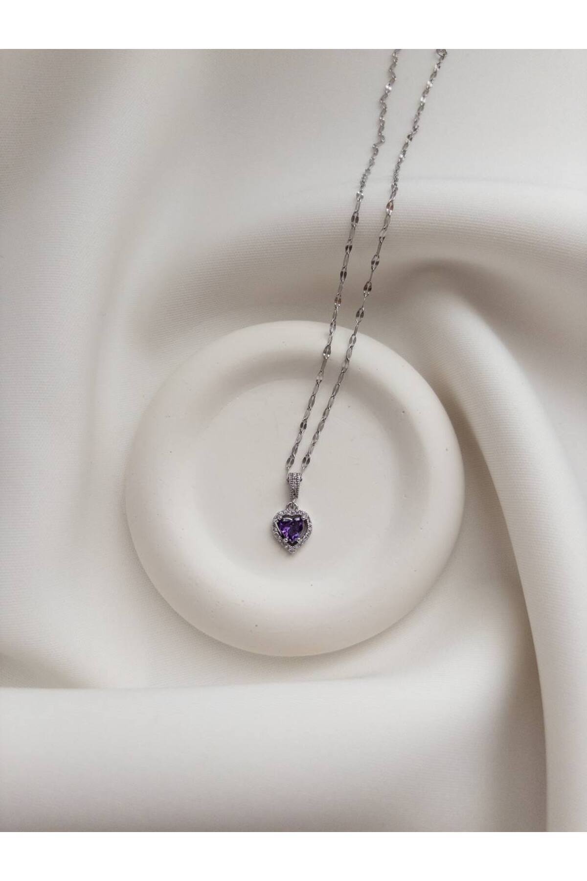 Mor Kalpli Çelik Kolye Mor Kalpli Çelik Kolye MJ272 45 cm