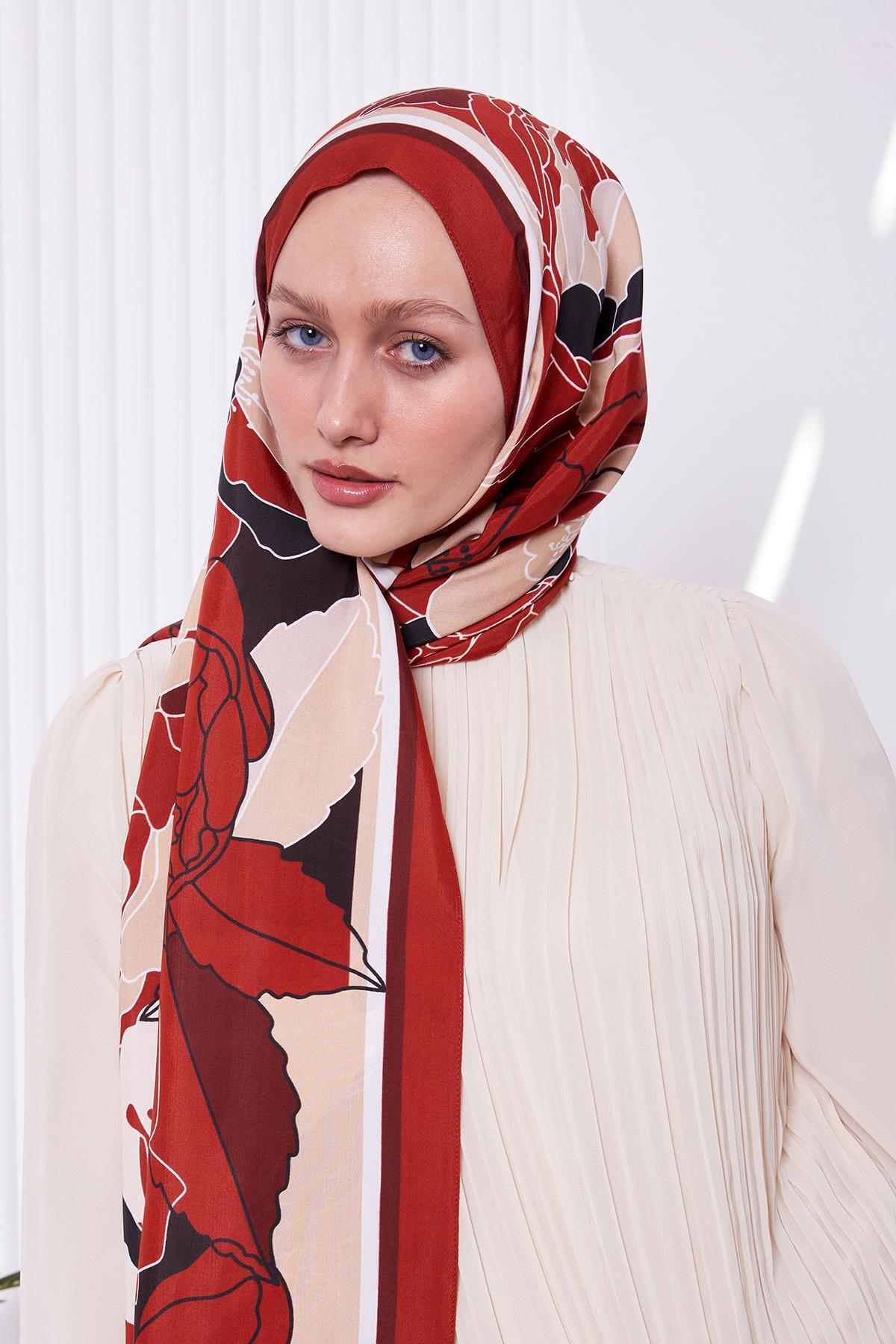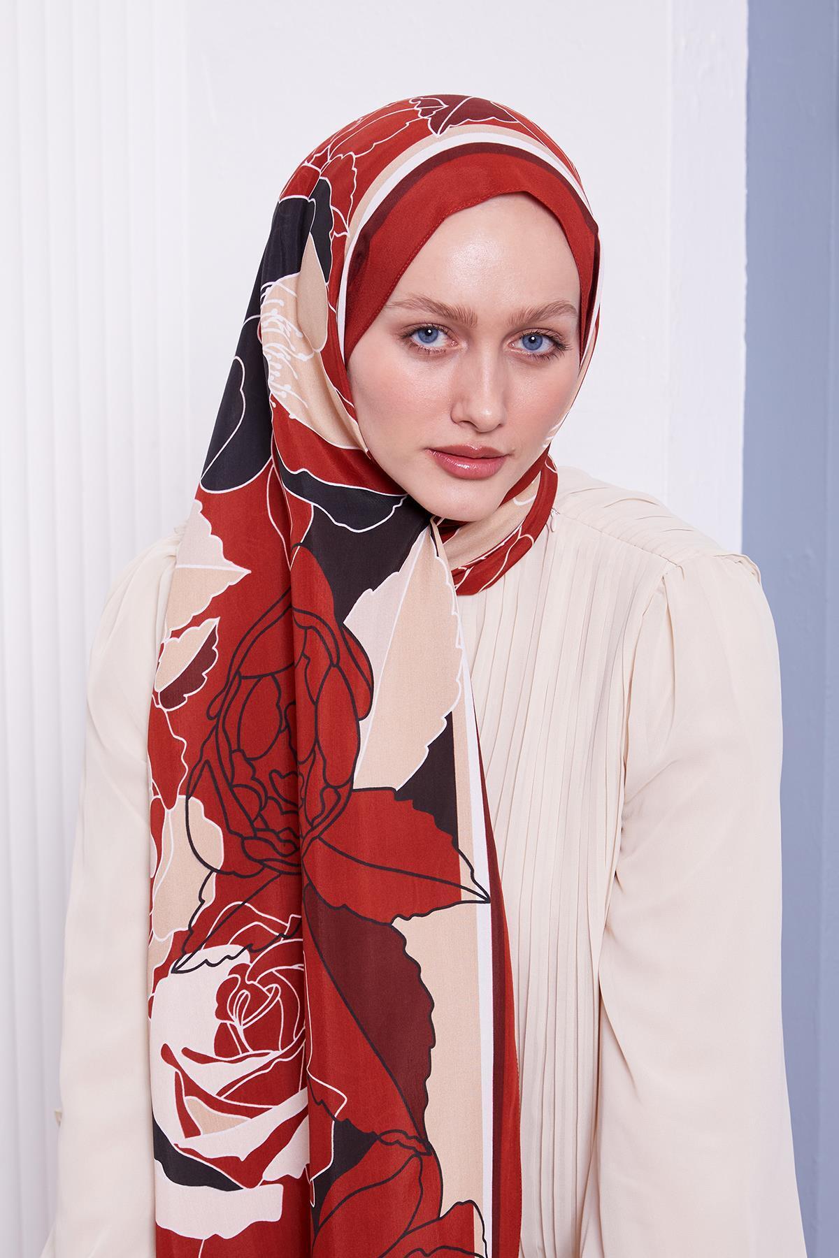Kiremit Çiçek Desen Royal Şal Kiremit Çiçek Desen Royal Şal LVD.MOD.0013 190 x 75