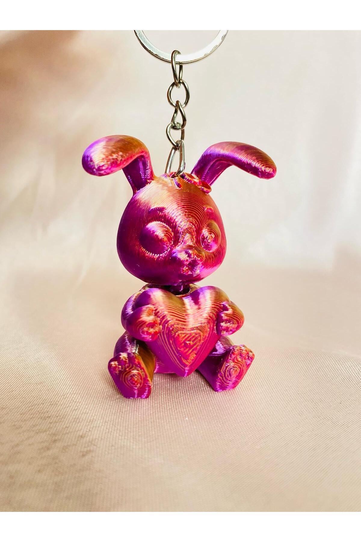 Kalp tutan sevimli çift renk tavşan anahtarlık