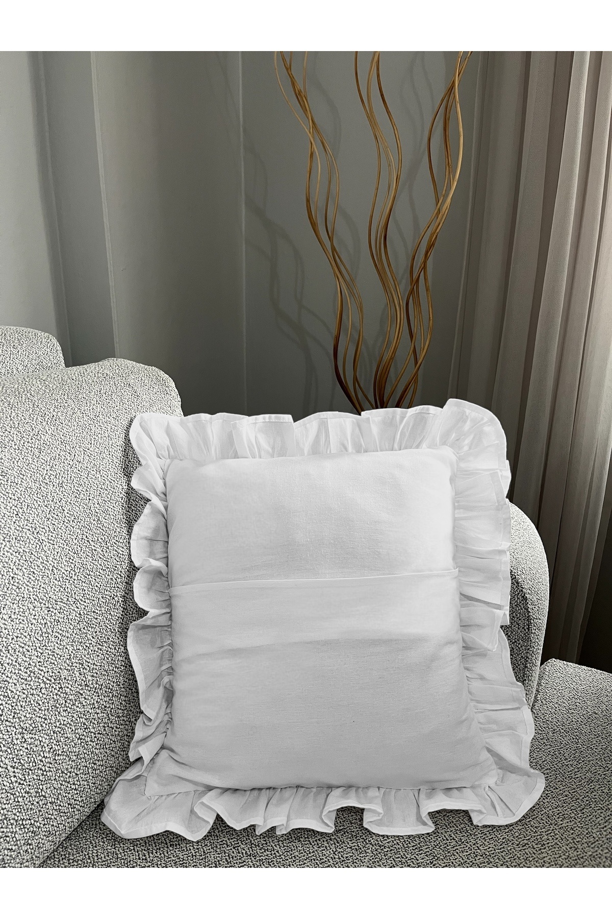 Ham Keten Beyaz Fırfırlı Kırlent Kılıfı 40x40cm Ham Keten Beyaz Fırfırlı Kırlent Kılıfı 40x40cm MEMHOME005 40 x 40
