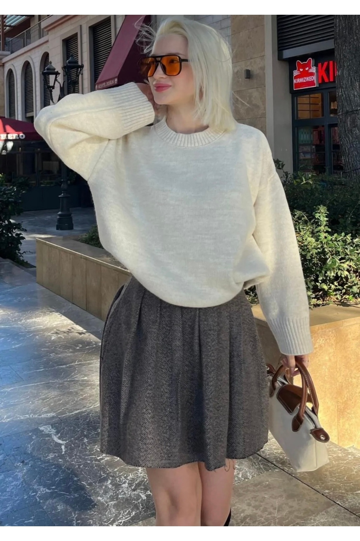 Ekru Bisiklet Yaka Oversize Triko Kazak Ekru Bisiklet Yaka Oversize Triko Kazak 8373628292636 Standart