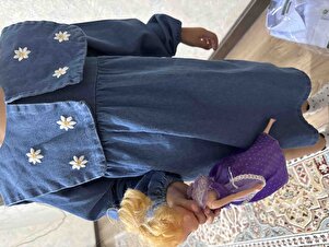 Kız Bebek Nakışlı Uzun Kollu Jean Elbise E0466A525SP Kız Bebek Nakışlı Uzun Kollu Jean Elbise E0466A525SP 5-6 Yaş