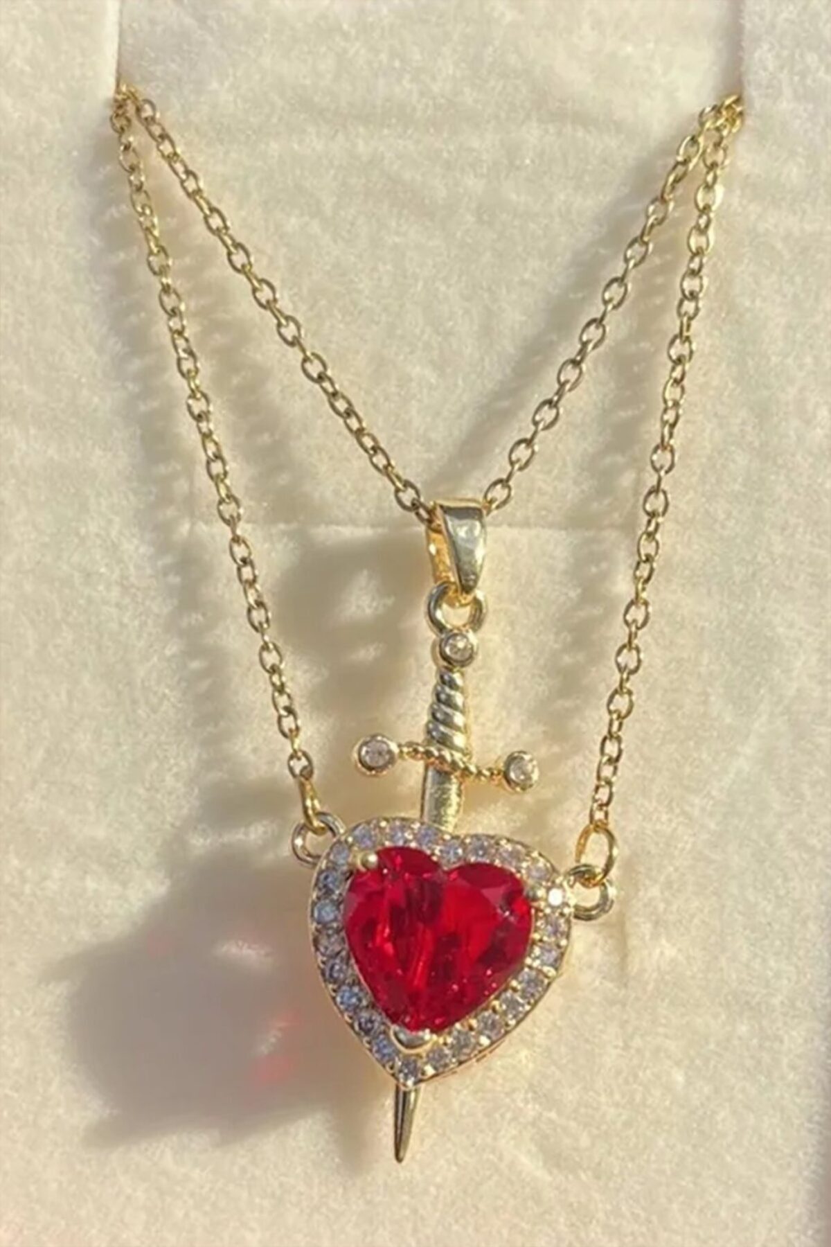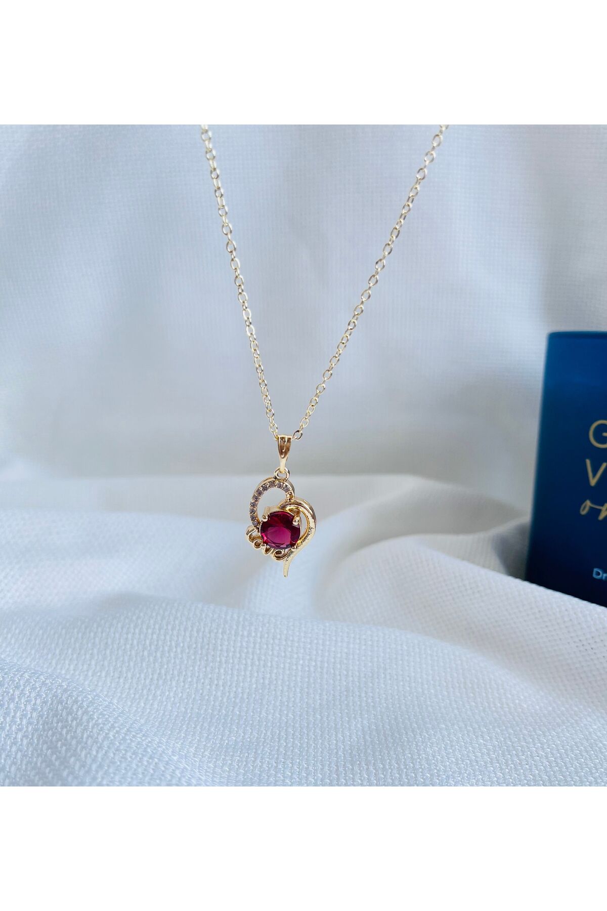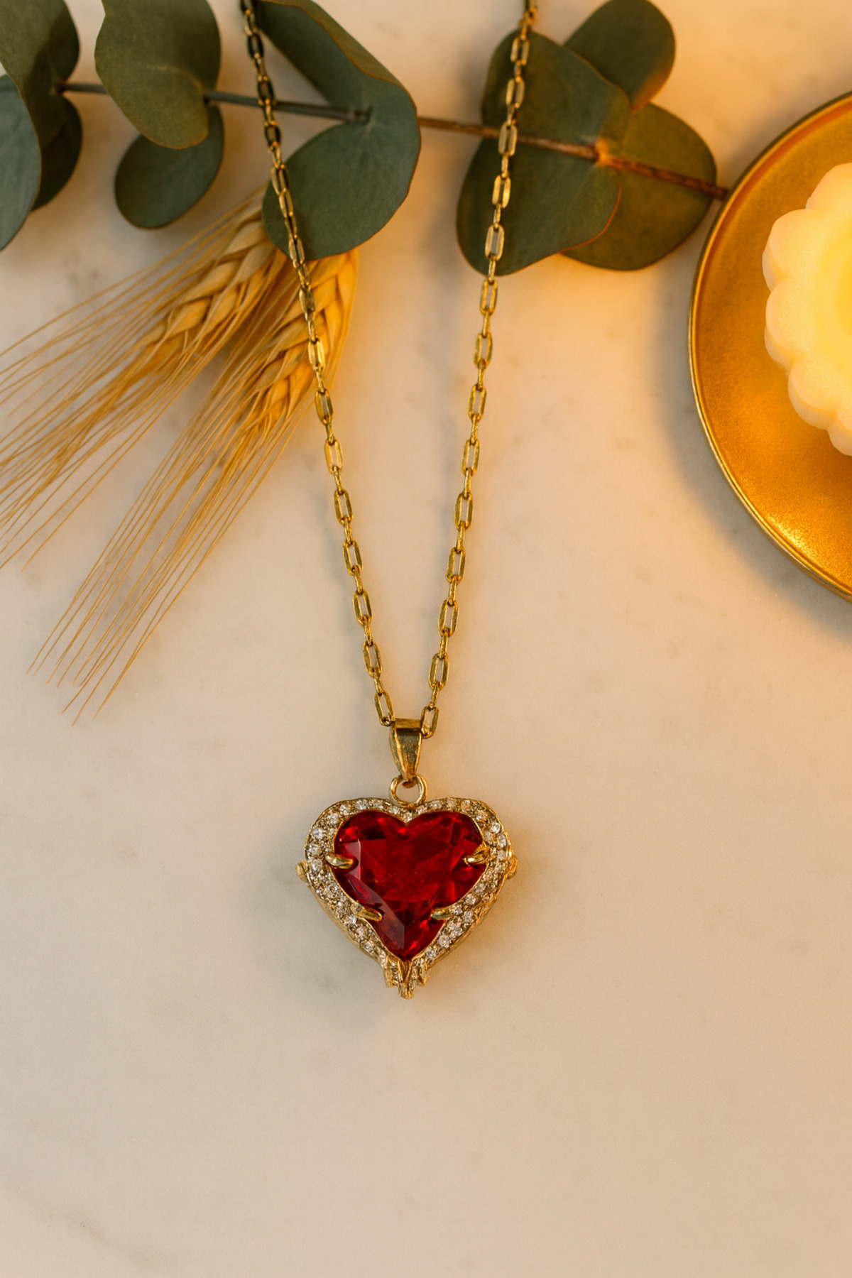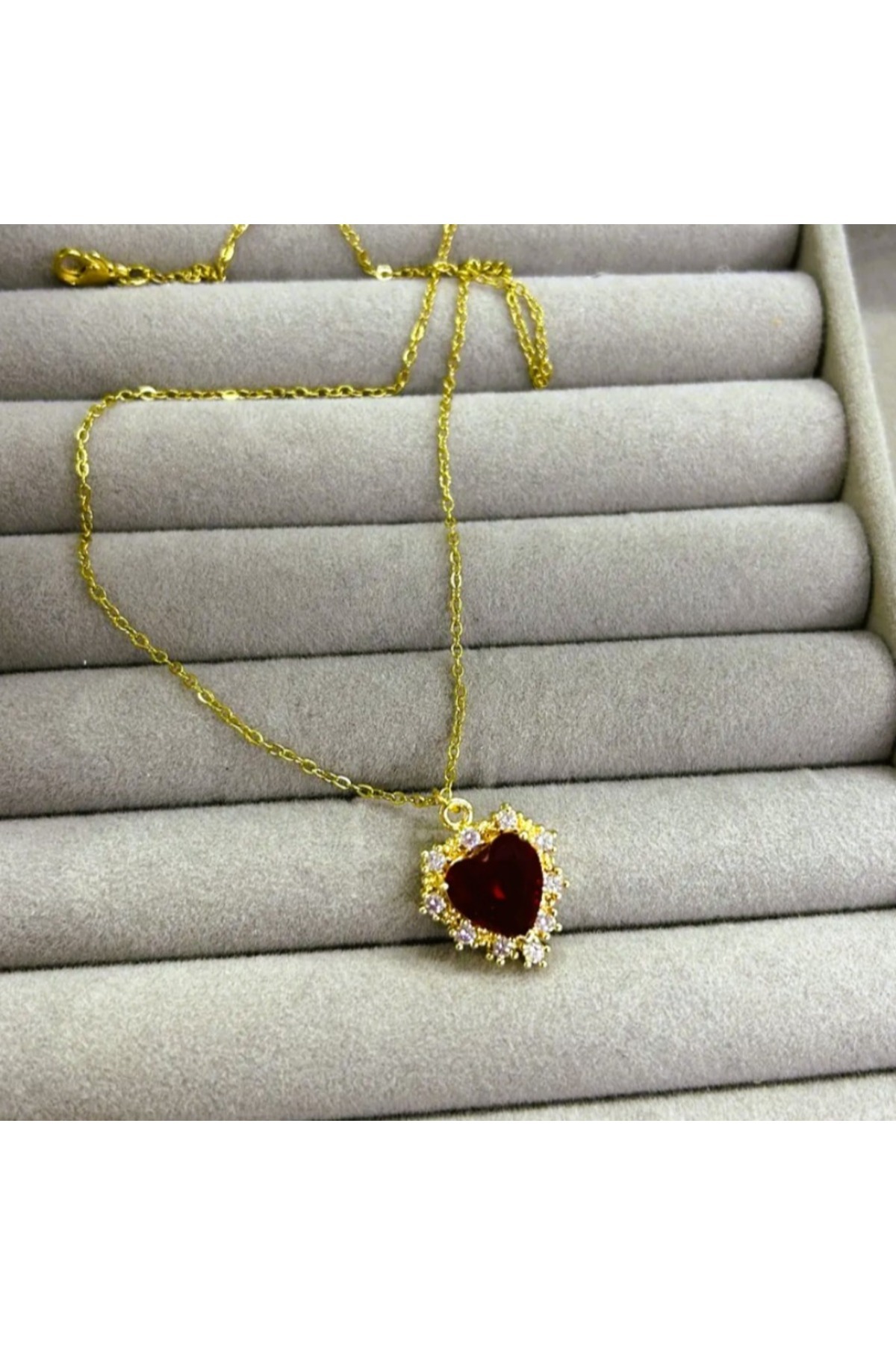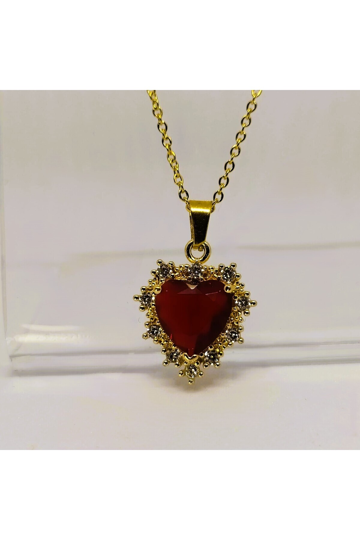 KIRMIZI KALP DETAY ZİRKON TAŞLI GOLD ÇELİK KOLYE KIRMIZI KALP DETAY ZİRKON TAŞLI GOLD ÇELİK KOLYE 6YFH 43 cm