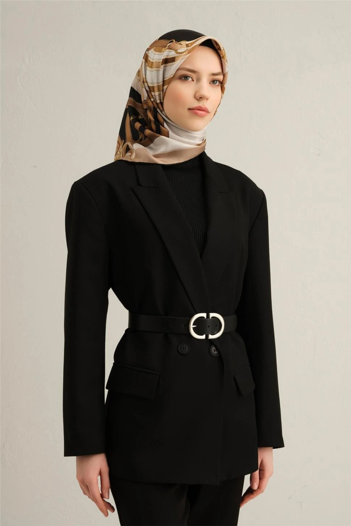 İpek Eşarp 2025 Yaz - 9344-39 Siyah Bej Twill İpek Eşarp 2025 Yaz - 9344-39 Siyah Bej Twill Tek Ebat