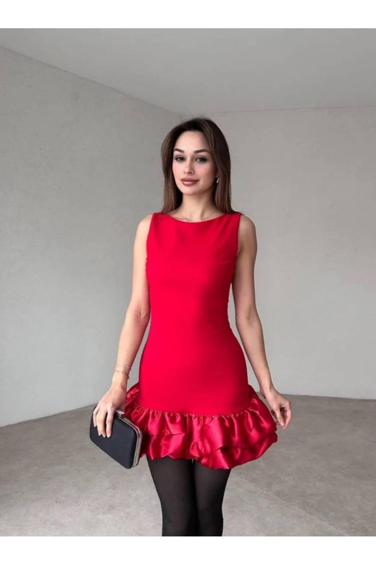 Kalın Askılı, Etek Ucu Saten, Mini Balon Şortlu Elbise Kalın Askılı, Etek Ucu Saten, Mini Balon Şortlu Elbise AS-11937-01 L