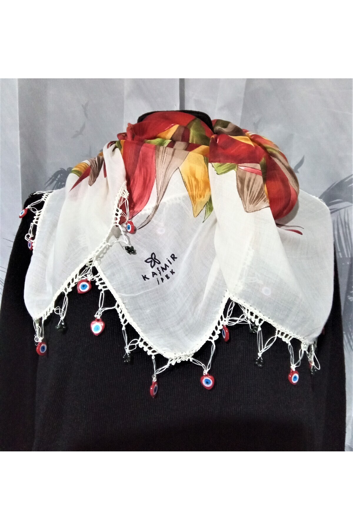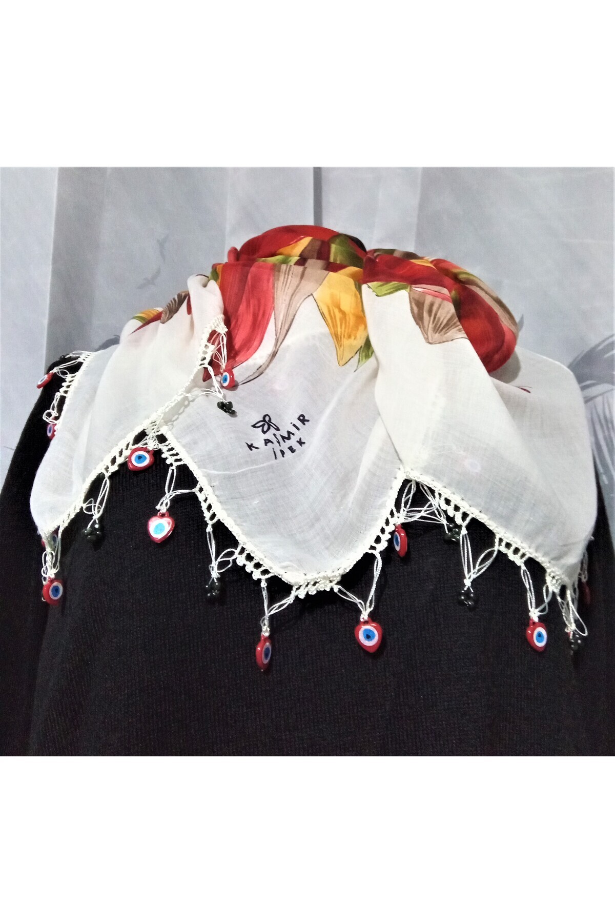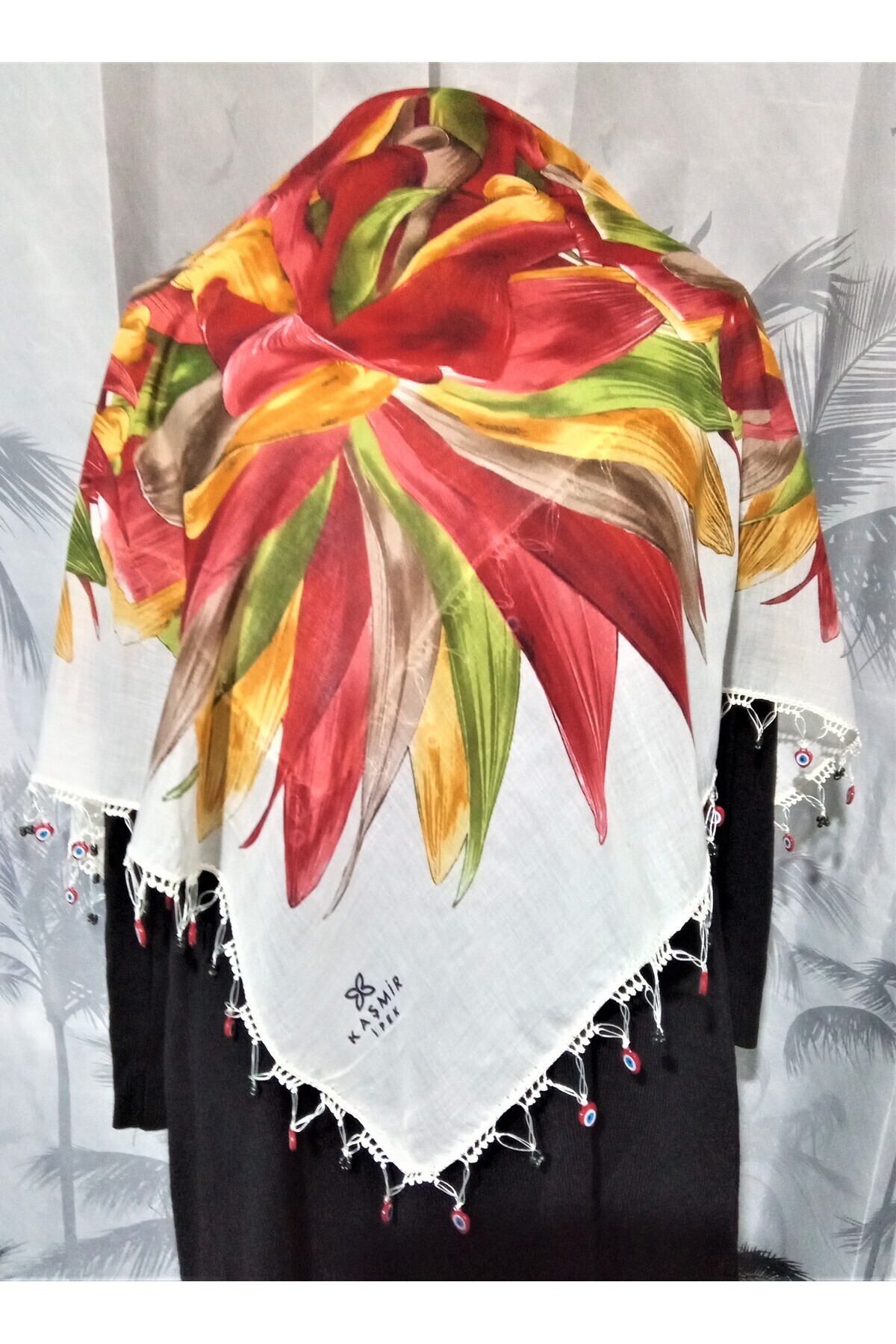 El İşi Tığ Oyalı Yazma Nazar Boncuklu Yazma Kaşmir 100*100 El İşi Tığ Oyalı Yazma Nazar Boncuklu Yazma Kaşmir 100*100 KAŞMİRYAZAMA/YÖRESEL/ETNİK/HİPPİ 100 x 100