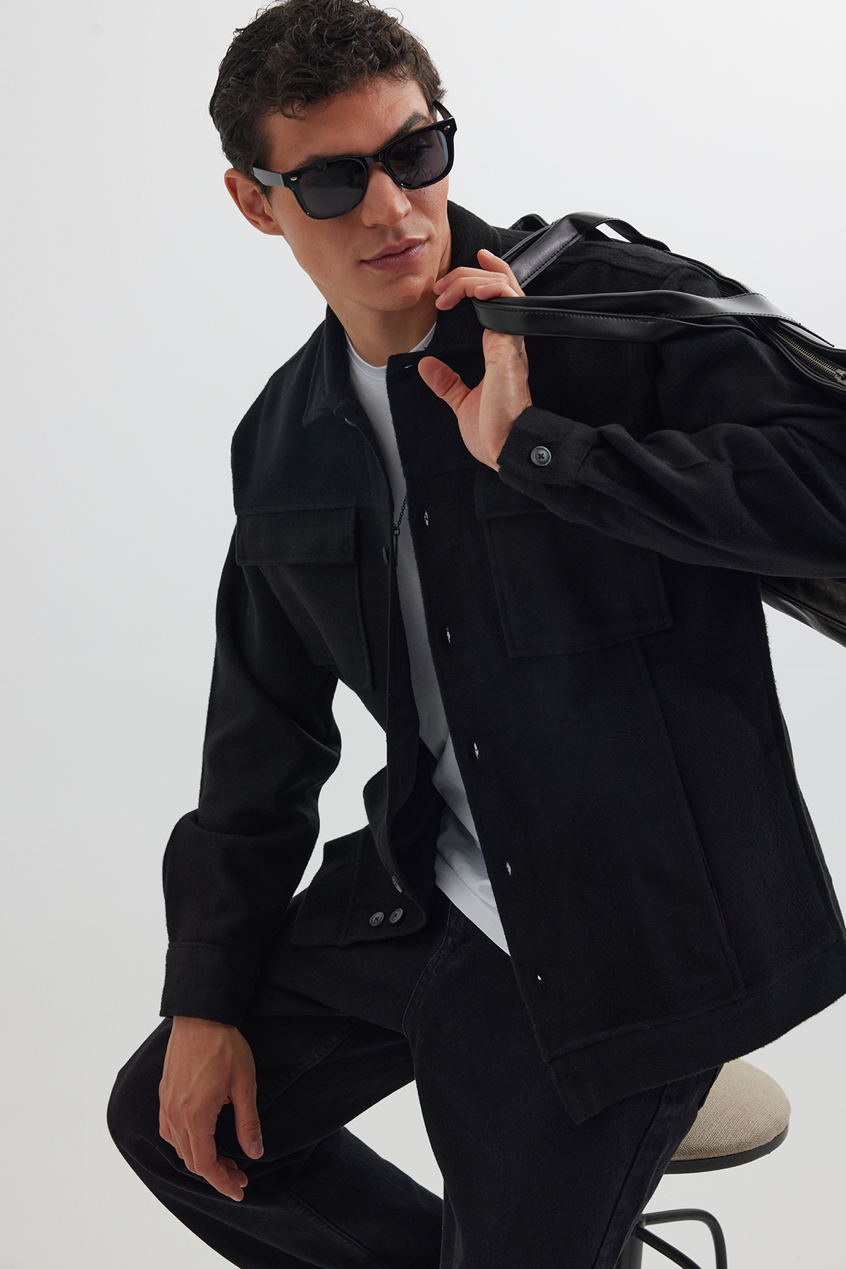 Erkek Relax Fit Rahat Kesim Çift Cepli Örme Gri Apaş Yaka Gömlek Erkek Relax Fit Rahat Kesim Çift Cepli Örme Gri Apaş Yaka Gömlek RF250029 2XL