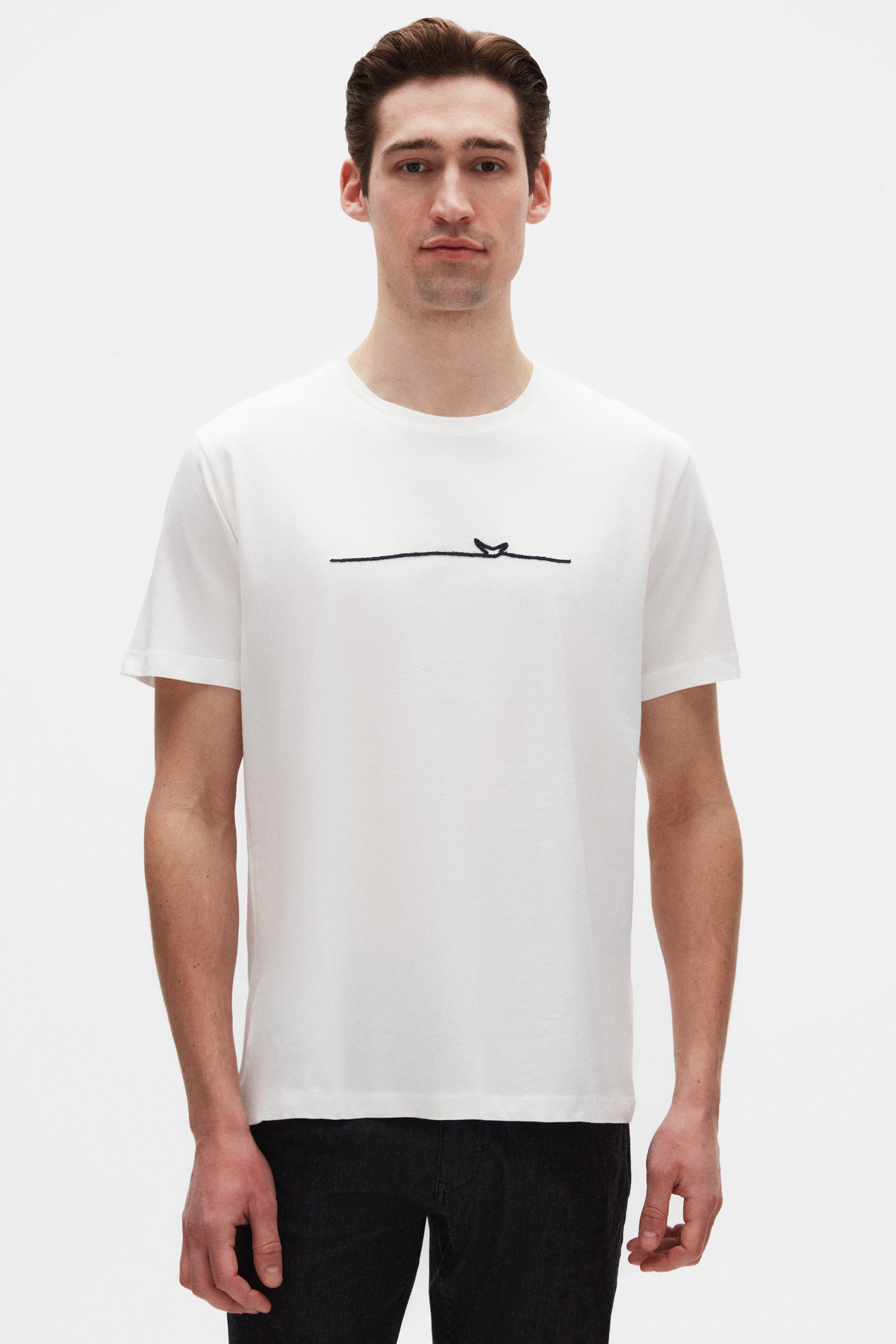 Kırık Beyaz Baskılı Bisiklet Yaka %100 Pamuk T-Shirt Kırık Beyaz Baskılı Bisiklet Yaka %100 Pamuk T-Shirt 50274 3XL