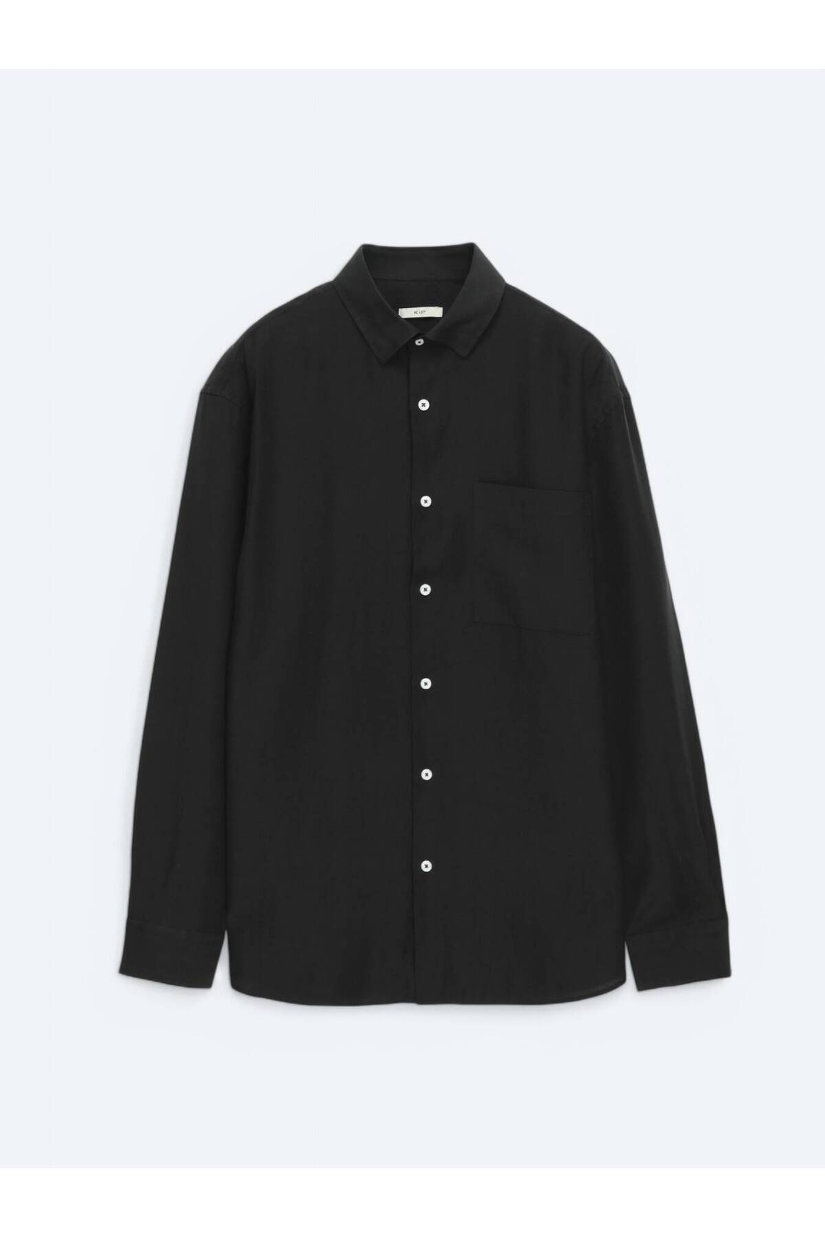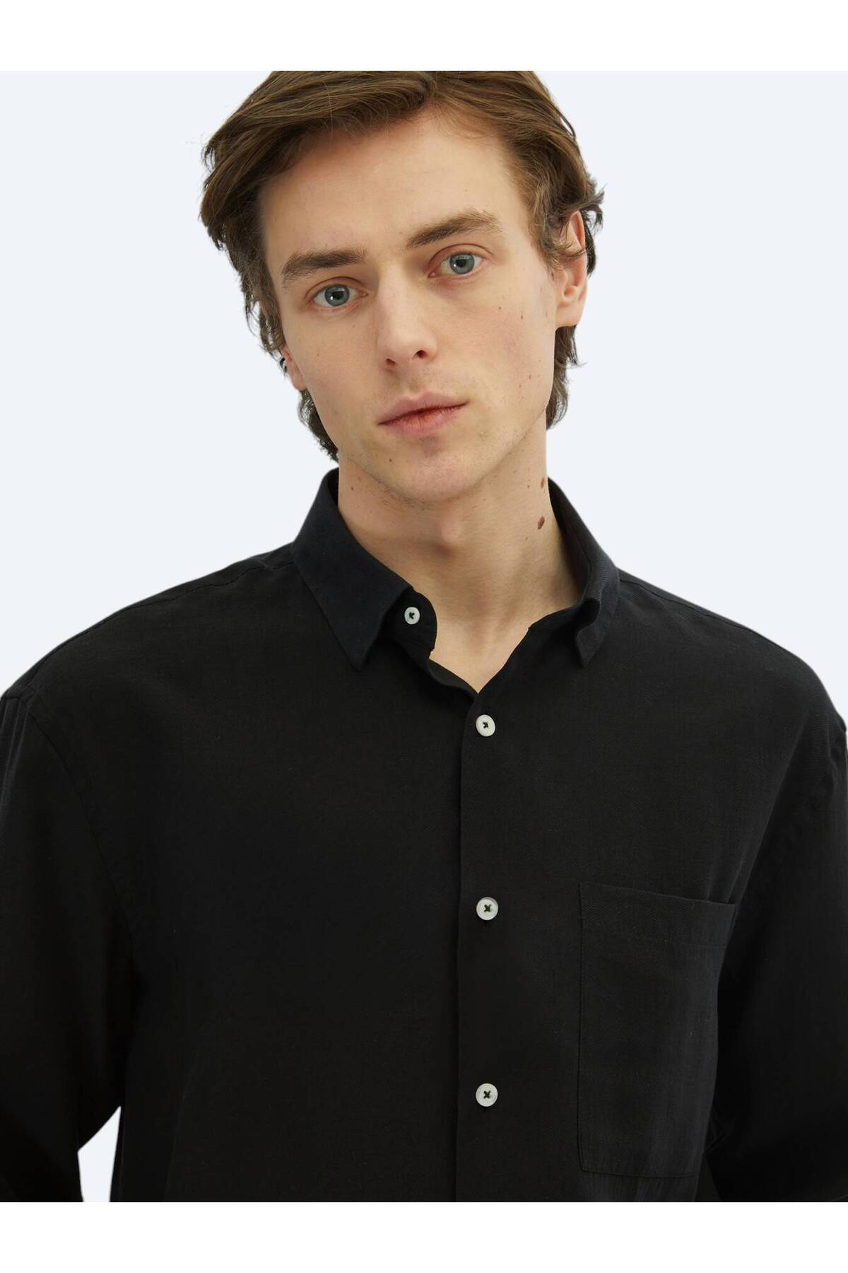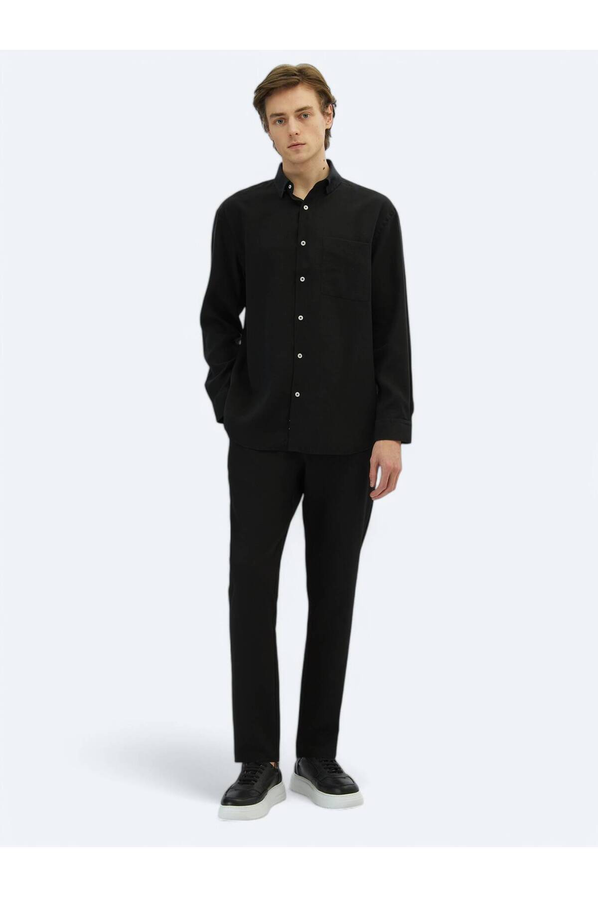 Siyah Düz Oversize Fit Dokuma Casual Gömlek Siyah Düz Oversize Fit Dokuma Casual Gömlek 50223 47