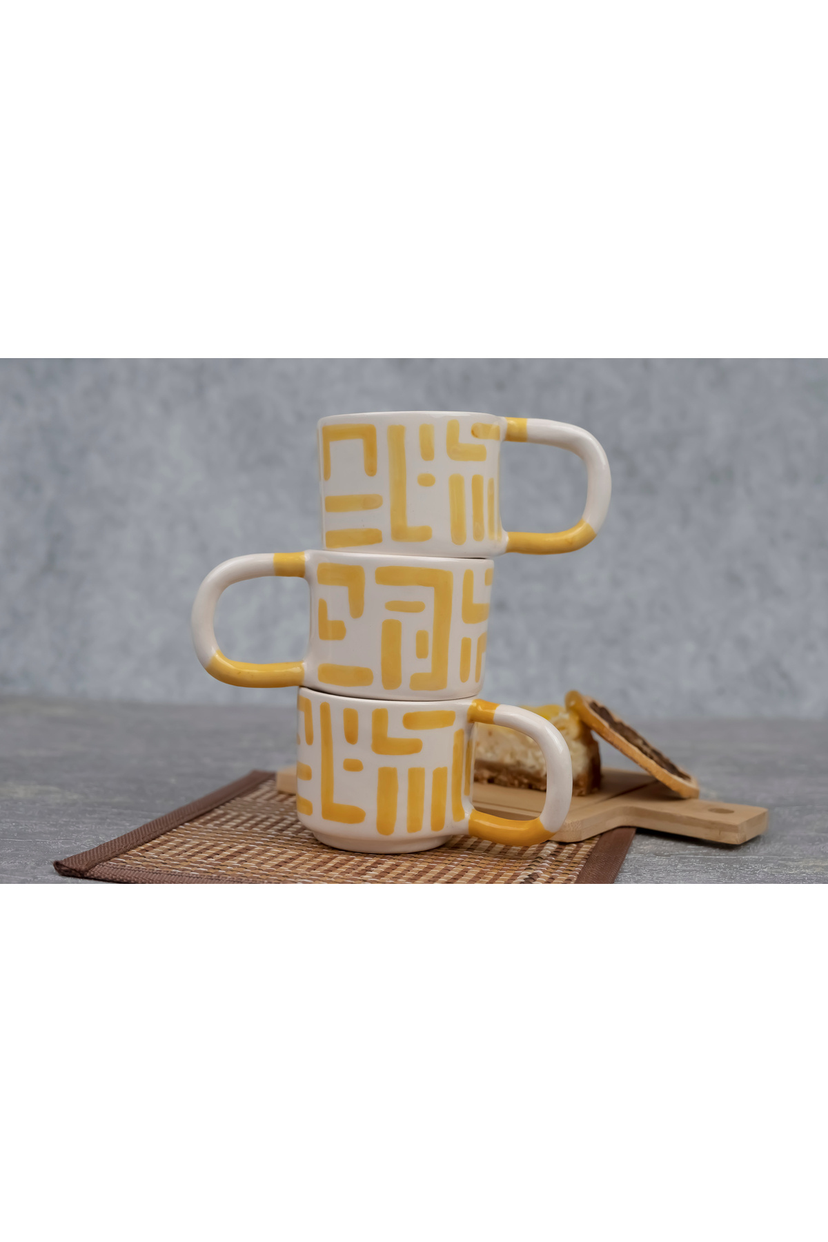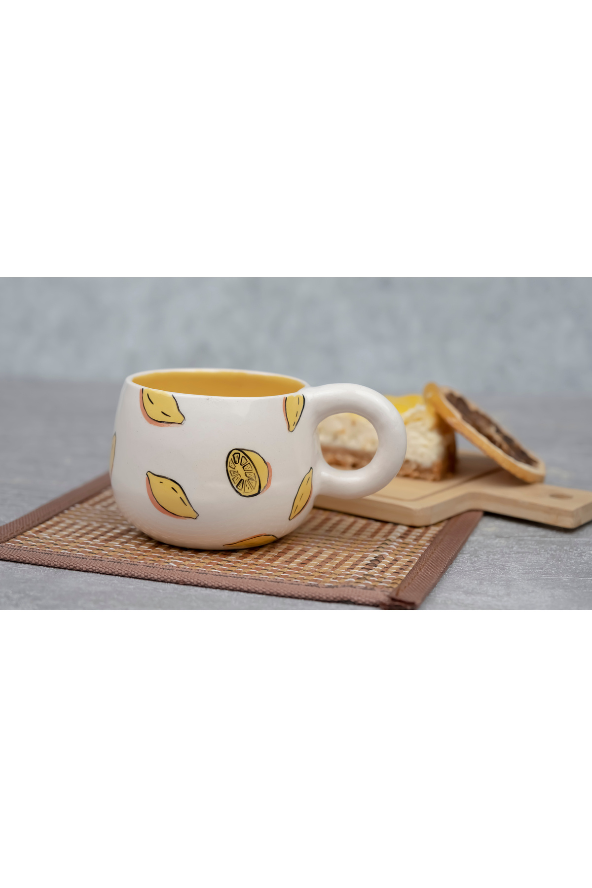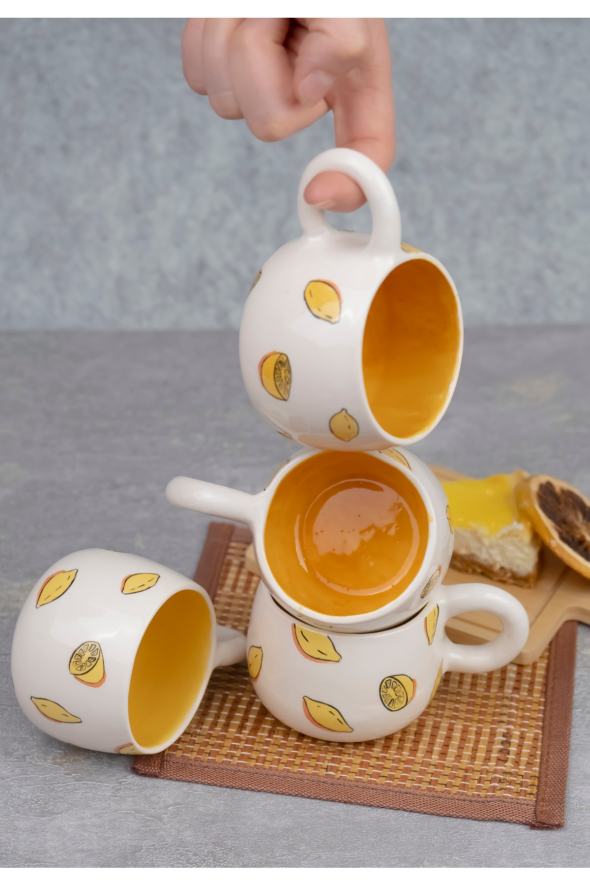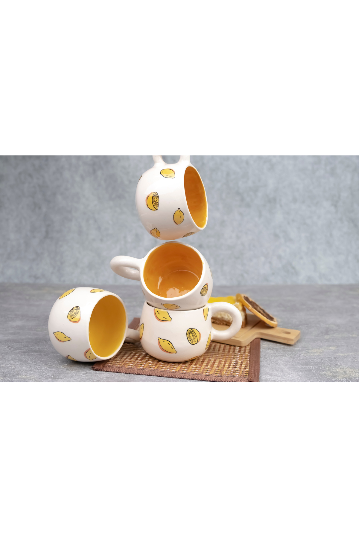 Limonlu 3'lü Set El Yapımı Kulplu Seramik Bardak, Kupa Limonlu 3'lü Set El Yapımı Kulplu Seramik Bardak, Kupa S3CR1018 تک سایز