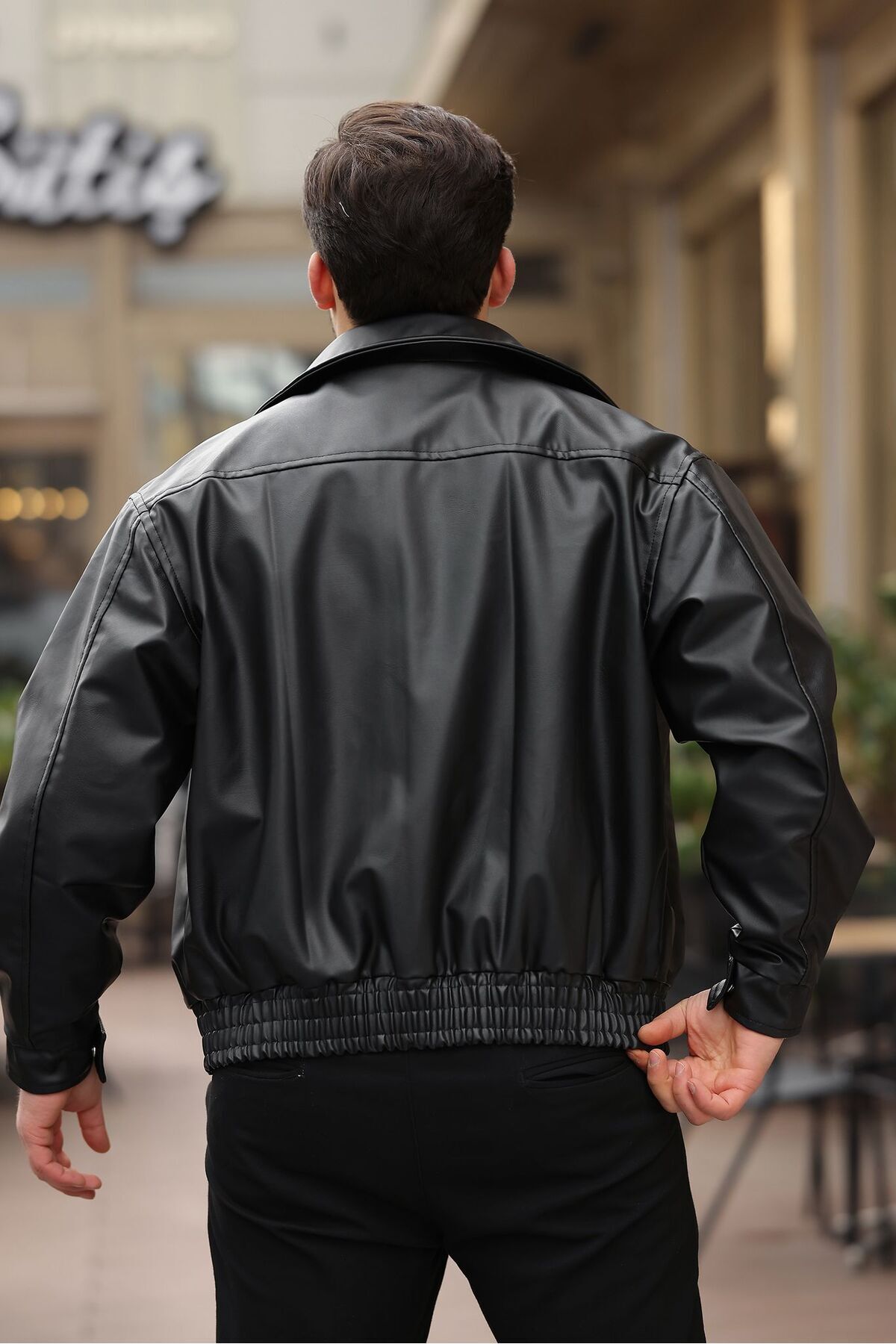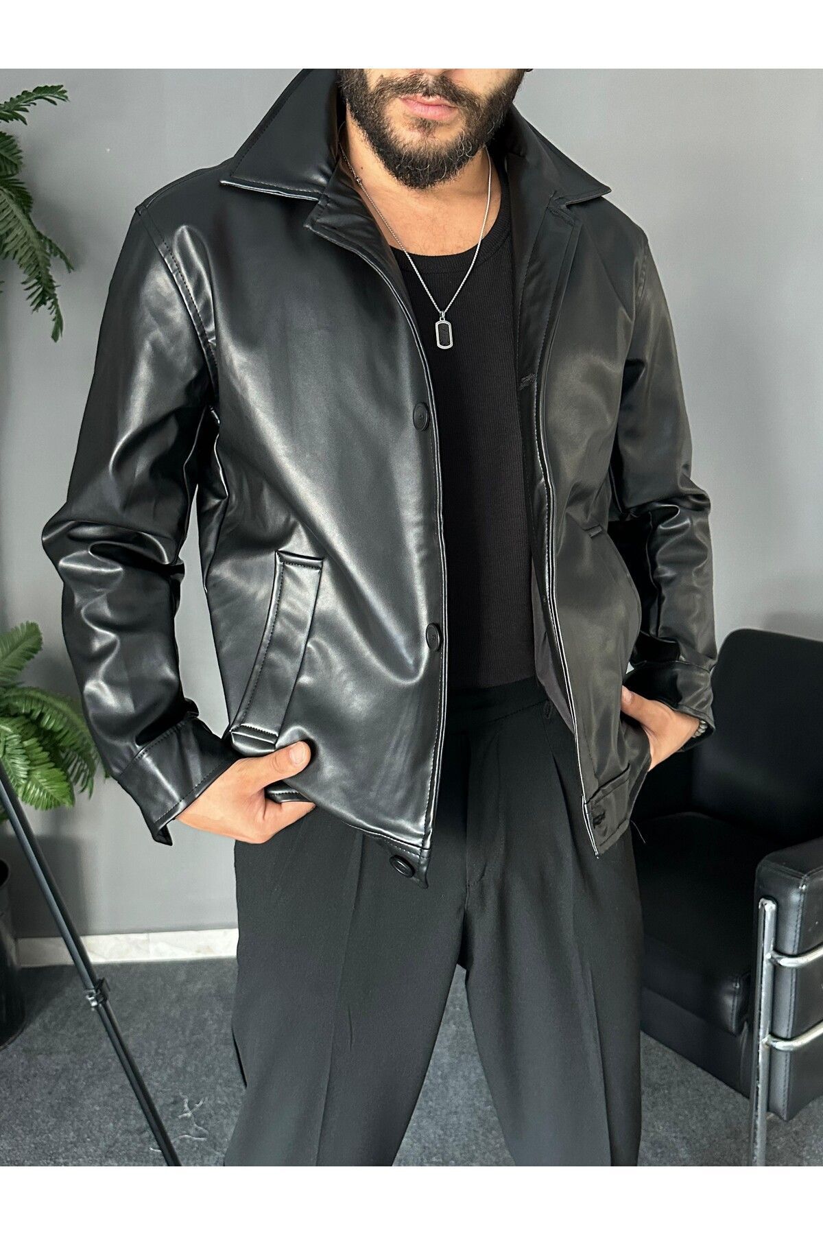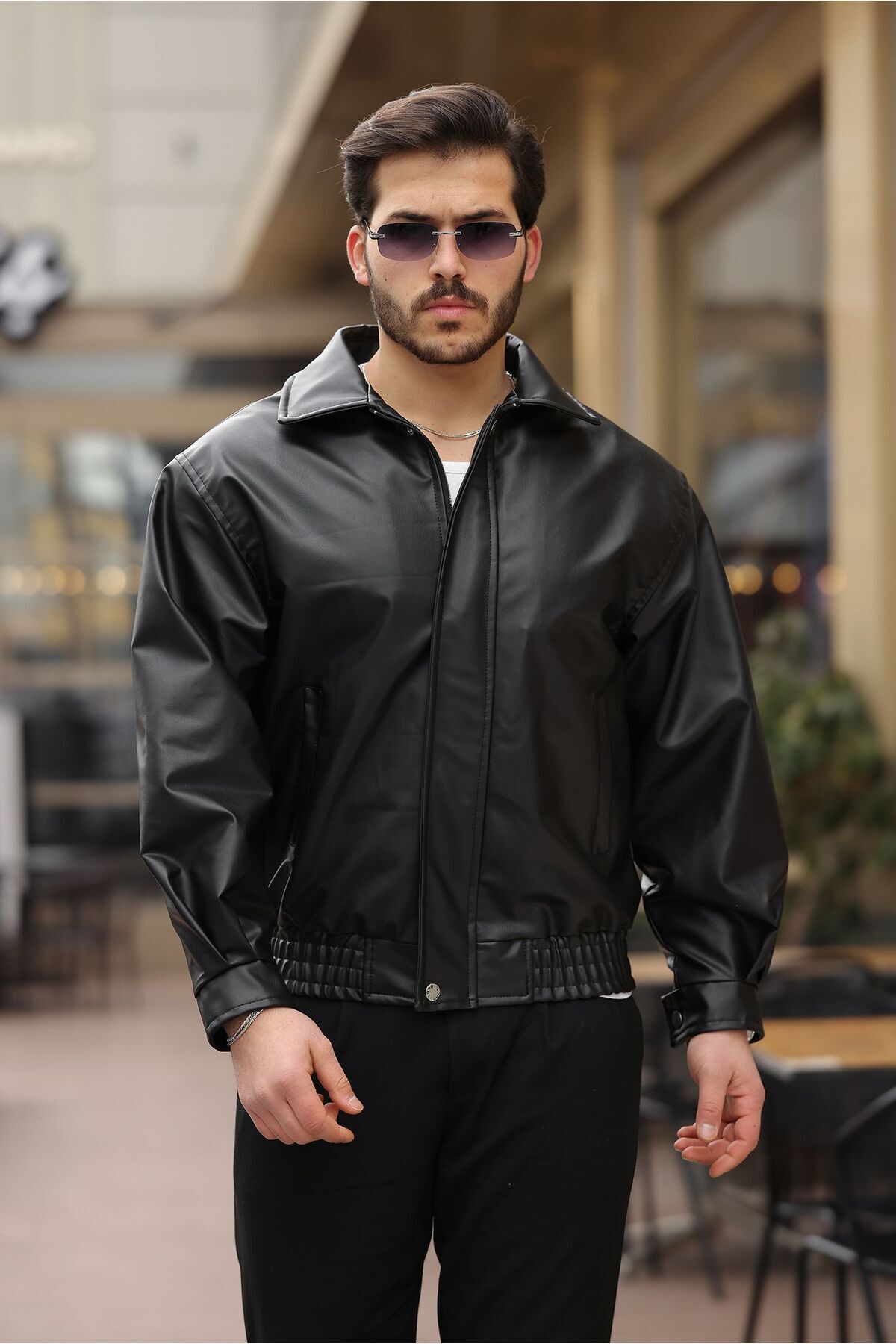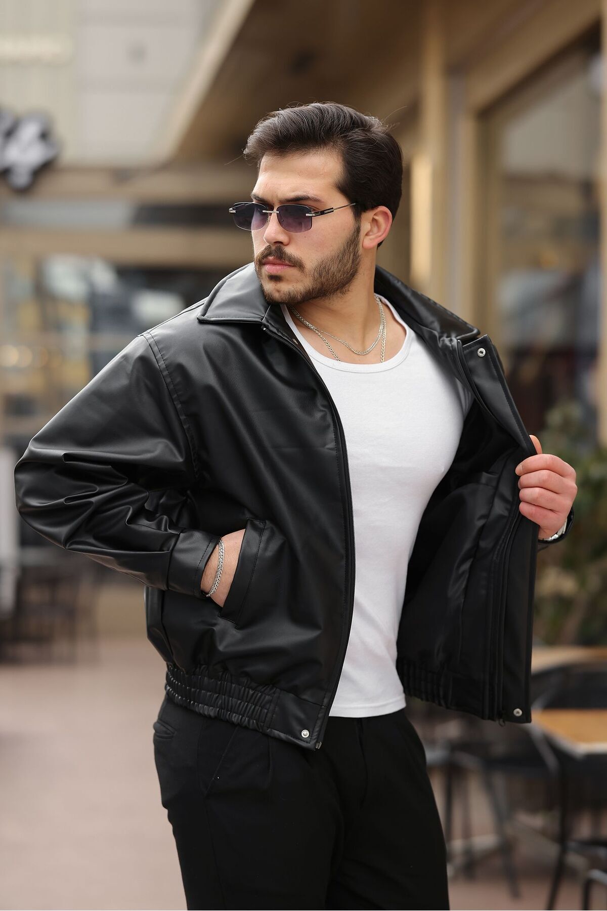 Siyah Oversize Rahat Kesim Bel Lastikli Deri Ceket Siyah Oversize Rahat Kesim Bel Lastikli Deri Ceket 652 2XL
