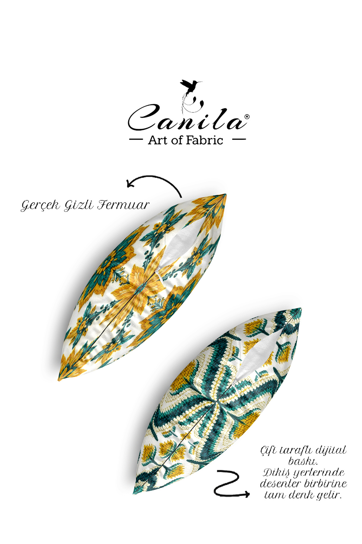Yeşil Çiçek ve Nakış Desenli Dijital Baskılı Kırlent Kılıfı. Çift Taraflı 2'li Set Yeşil Çiçek ve Nakış Desenli Dijital Baskılı Kırlent Kılıfı. Çift Taraflı 2'li Set KRL 253 43 x 43