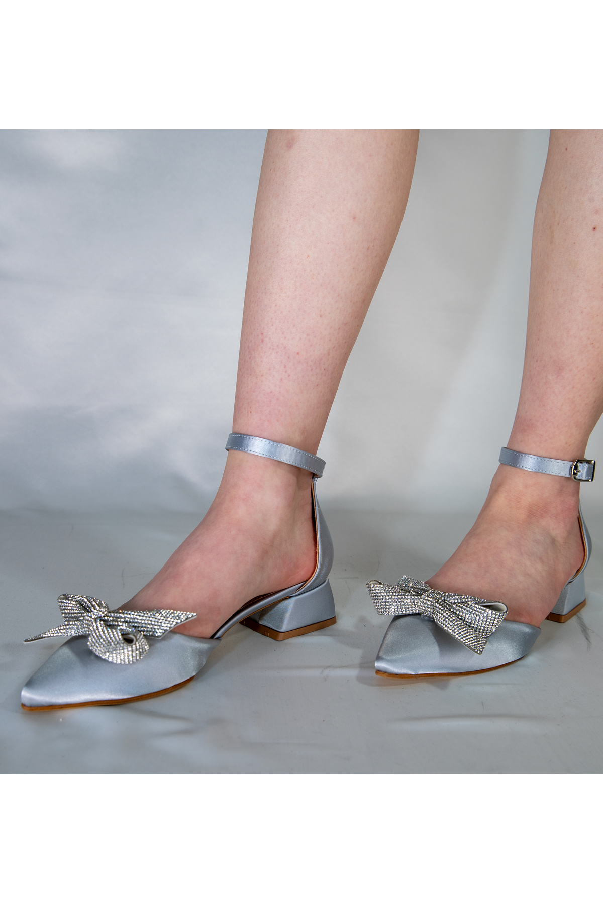 Lacivert Saten Fiyonklu Alçak Topuklu Ayakkabı Lacivert Saten Fiyonklu Alçak Topuklu Ayakkabı alçak fiyonklu 42
