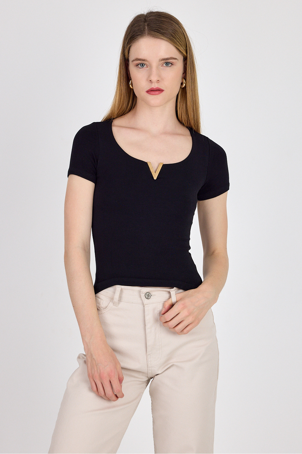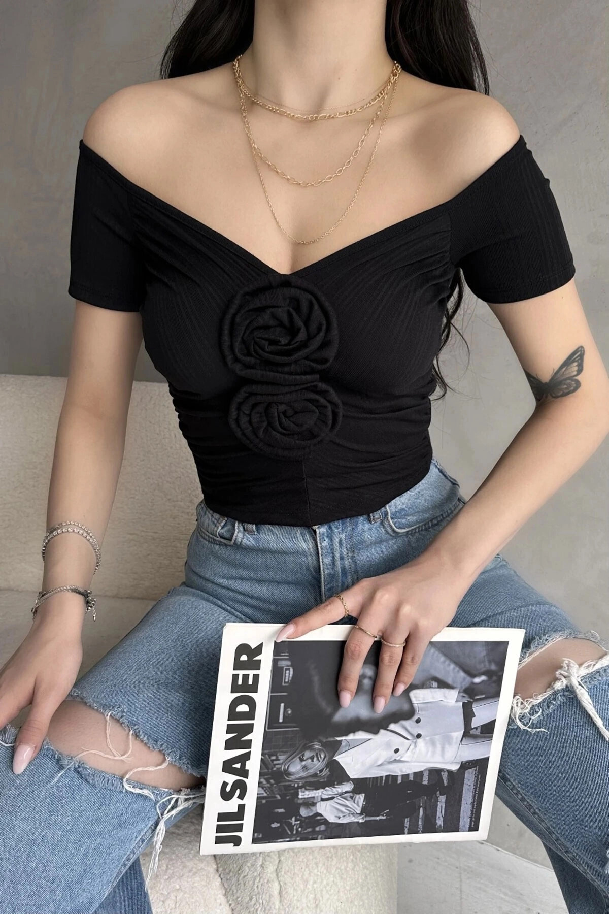 Kadın Siyah V Yaka Omuzu Volan Detaylı Crep Bluz Bcdf-252168 Kadın Siyah V Yaka Omuzu Volan Detaylı Crep Bluz Bcdf-252168 BCDF-252168 42