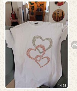 Üçlü Kalp Özel Tasarım Baskılı Kadın T-shirt Üçlü Kalp Özel Tasarım Baskılı Kadın T-shirt Heart45654 5XL