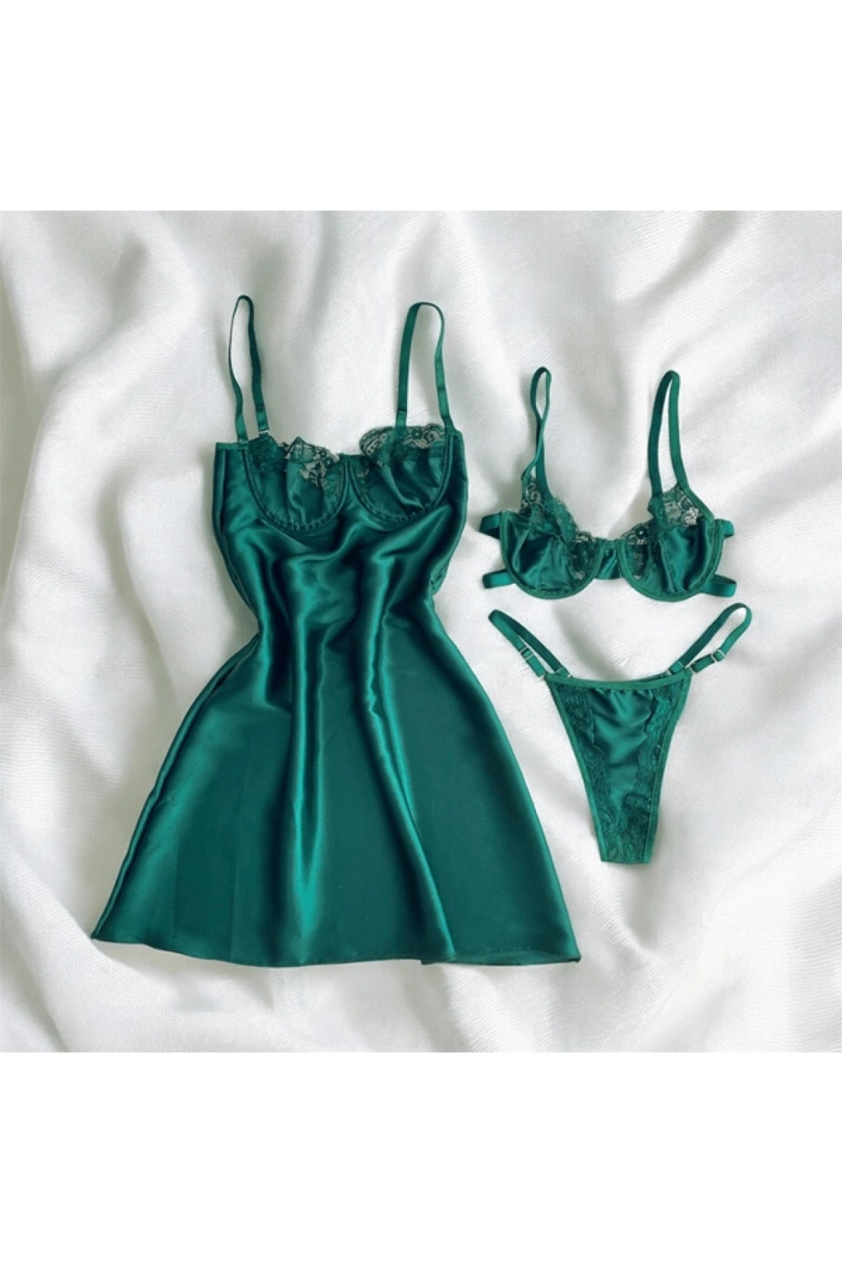 Kadın Yeşil Dantel Detaylı Sabahlık Gecelik Takım Kadın Yeşil Dantel Detaylı Sabahlık Gecelik Takım N.UR.5.3.R.O.3.6.Z.E.L.T. XL