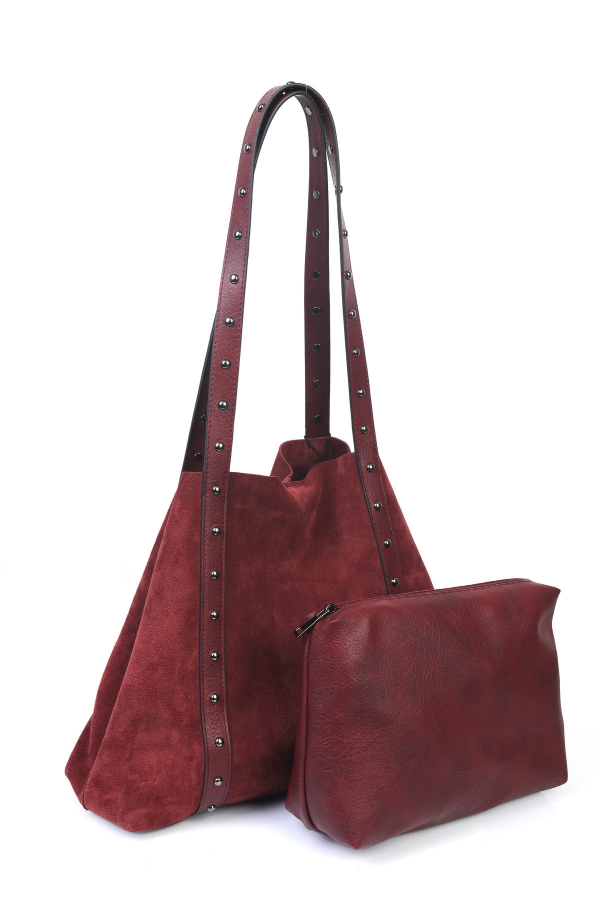 Hakiki Deri Süet Zımba Detaylı Kadın Omuz Çantası YC012075HSD Hakiki Deri Süet Zımba Detaylı Kadın Omuz Çantası YC012075HSD تک سایز