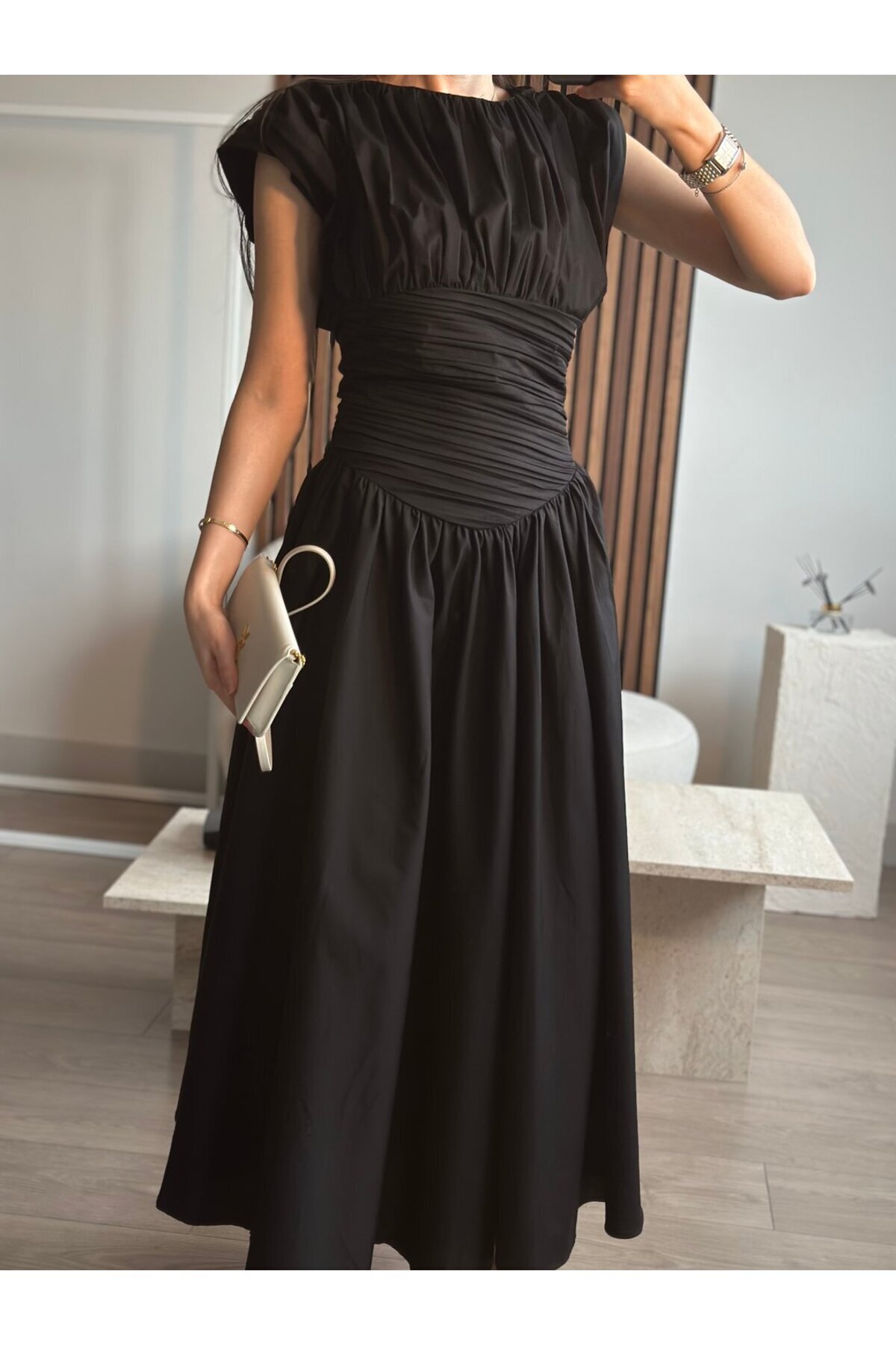 PİNTEREST MODEL DRAPELİ BELDEN OTURTMALI SİYAH ELBİSE PİNTEREST MODEL DRAPELİ BELDEN OTURTMALI SİYAH ELBİSE TGN-0001520 XL