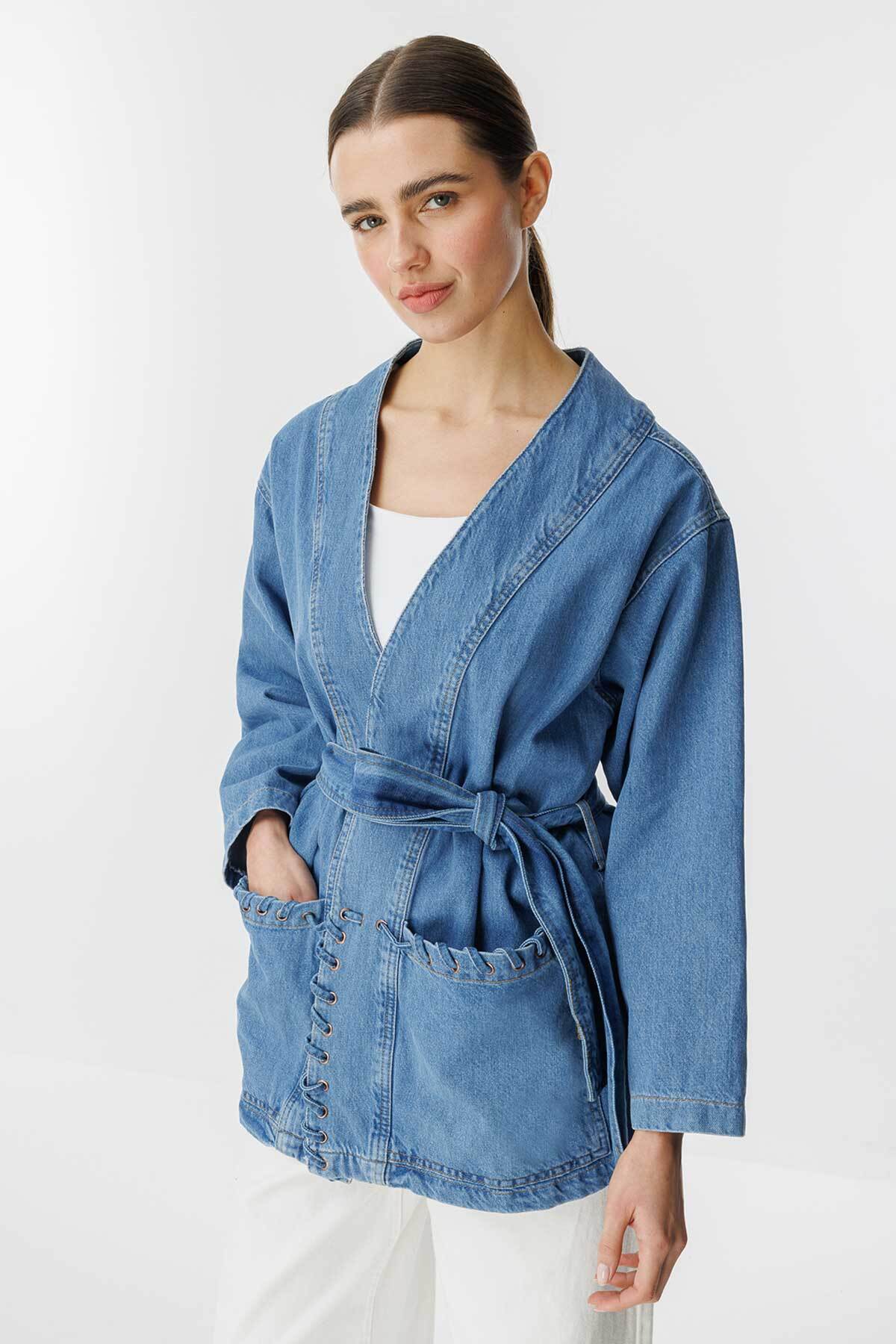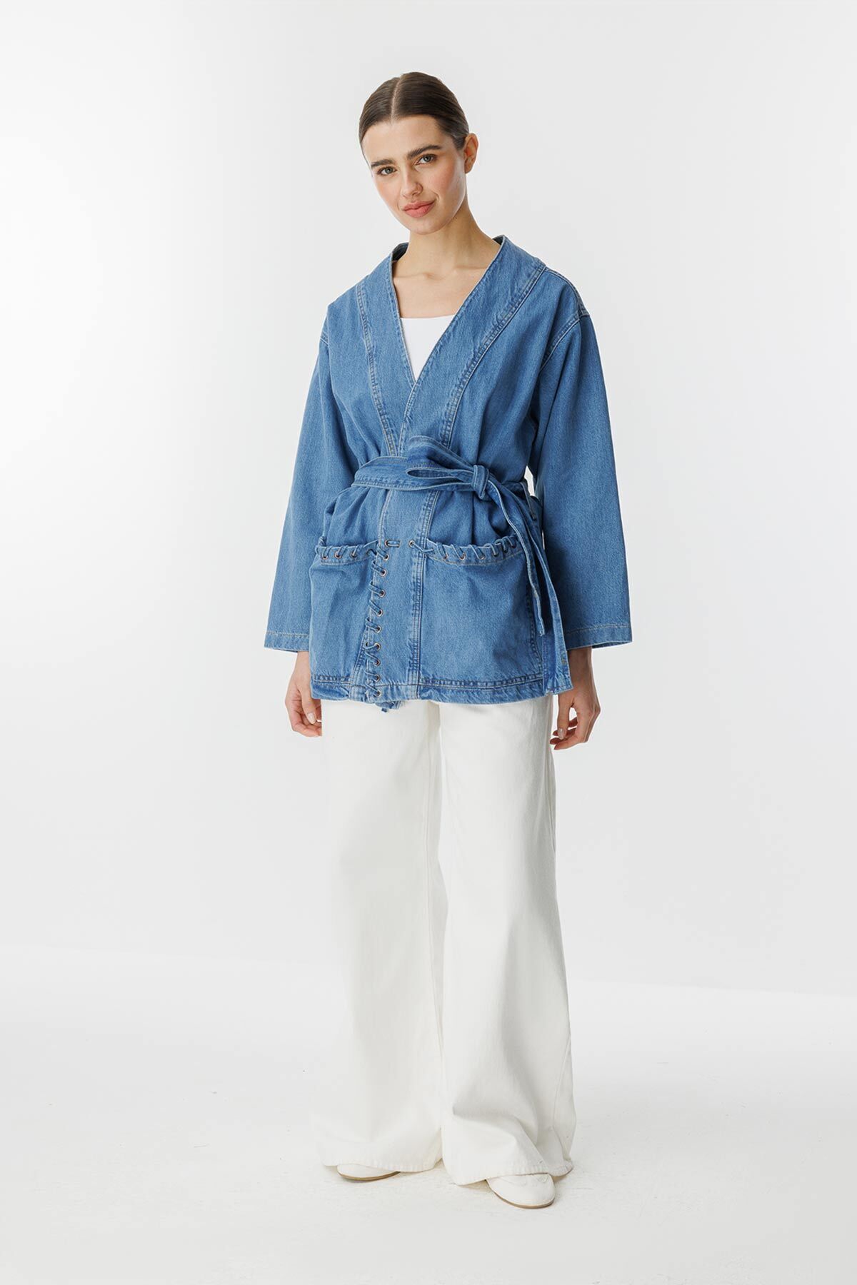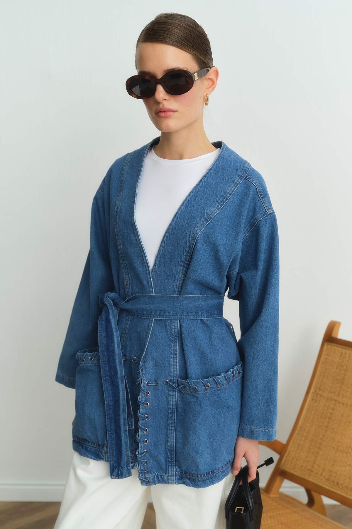 Sinna Örgü Mavi Denim Ceket Sinna Örgü Mavi Denim Ceket HY25021-MAVİ L/XL
