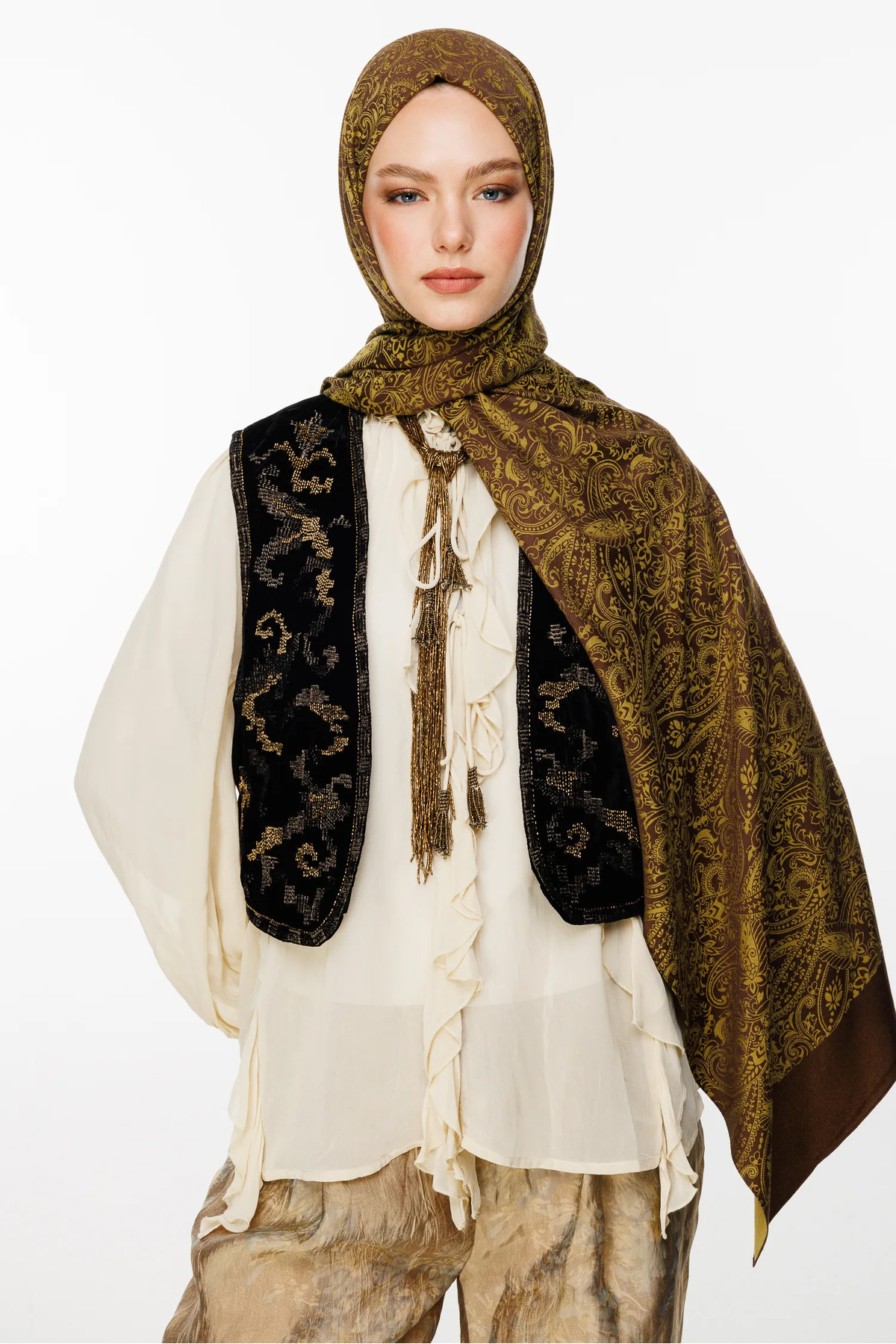 Velora Desen Çift Taraflı Şal Lacivert-Bej Velora Desen Çift Taraflı Şal Lacivert-Bej MRC004 75 x 195