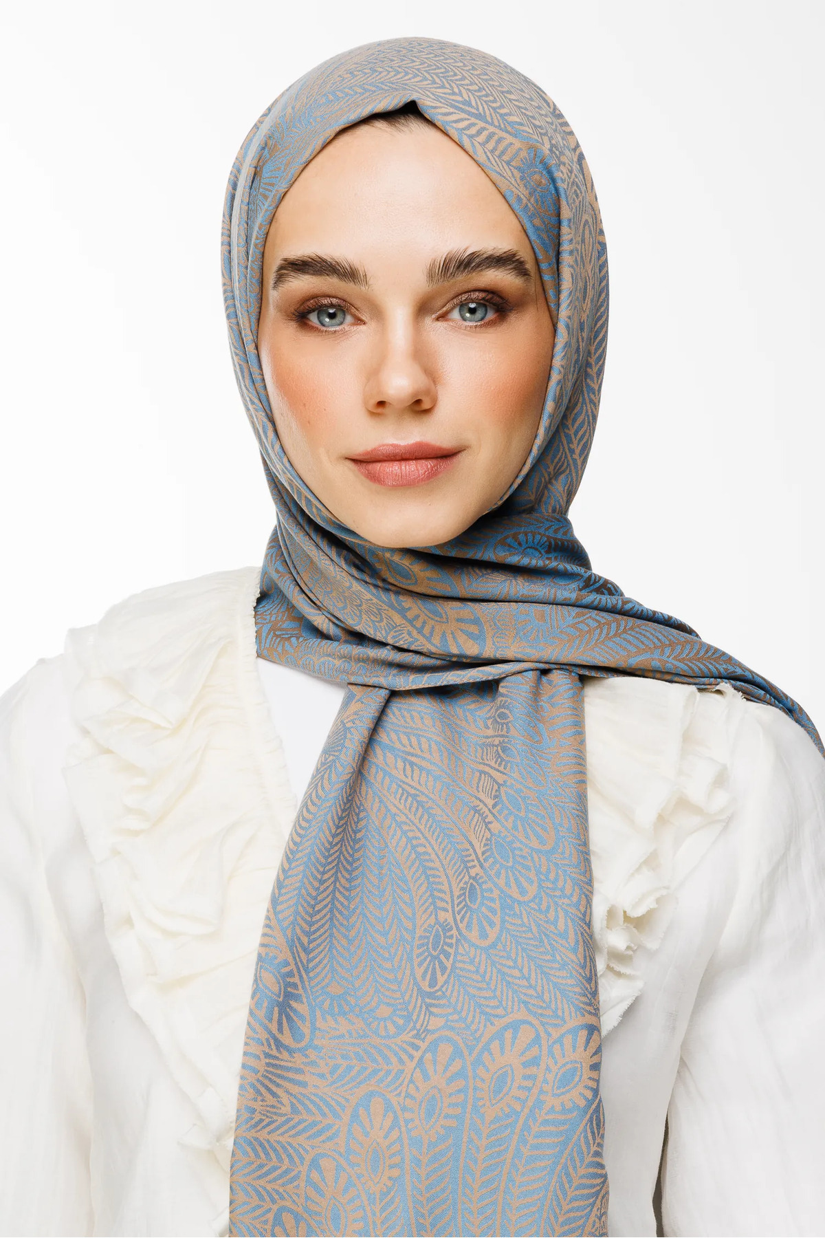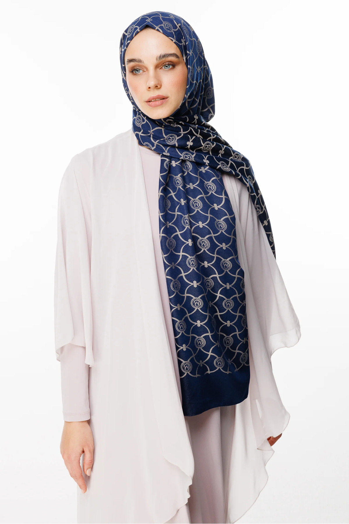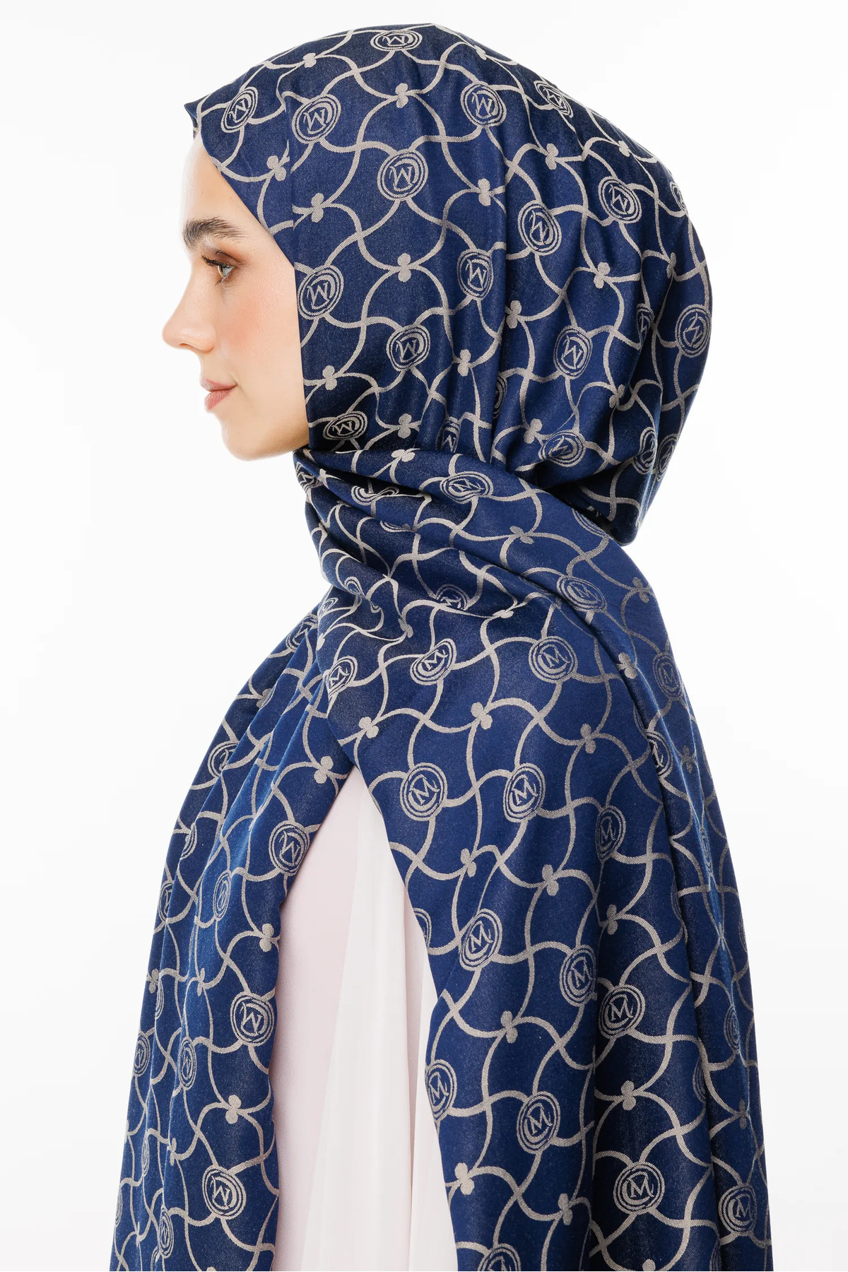 Marrakech Desen Çift Taraflı Şal Lacivert-Bej Marrakech Desen Çift Taraflı Şal Lacivert-Bej MRC005 75 x 195