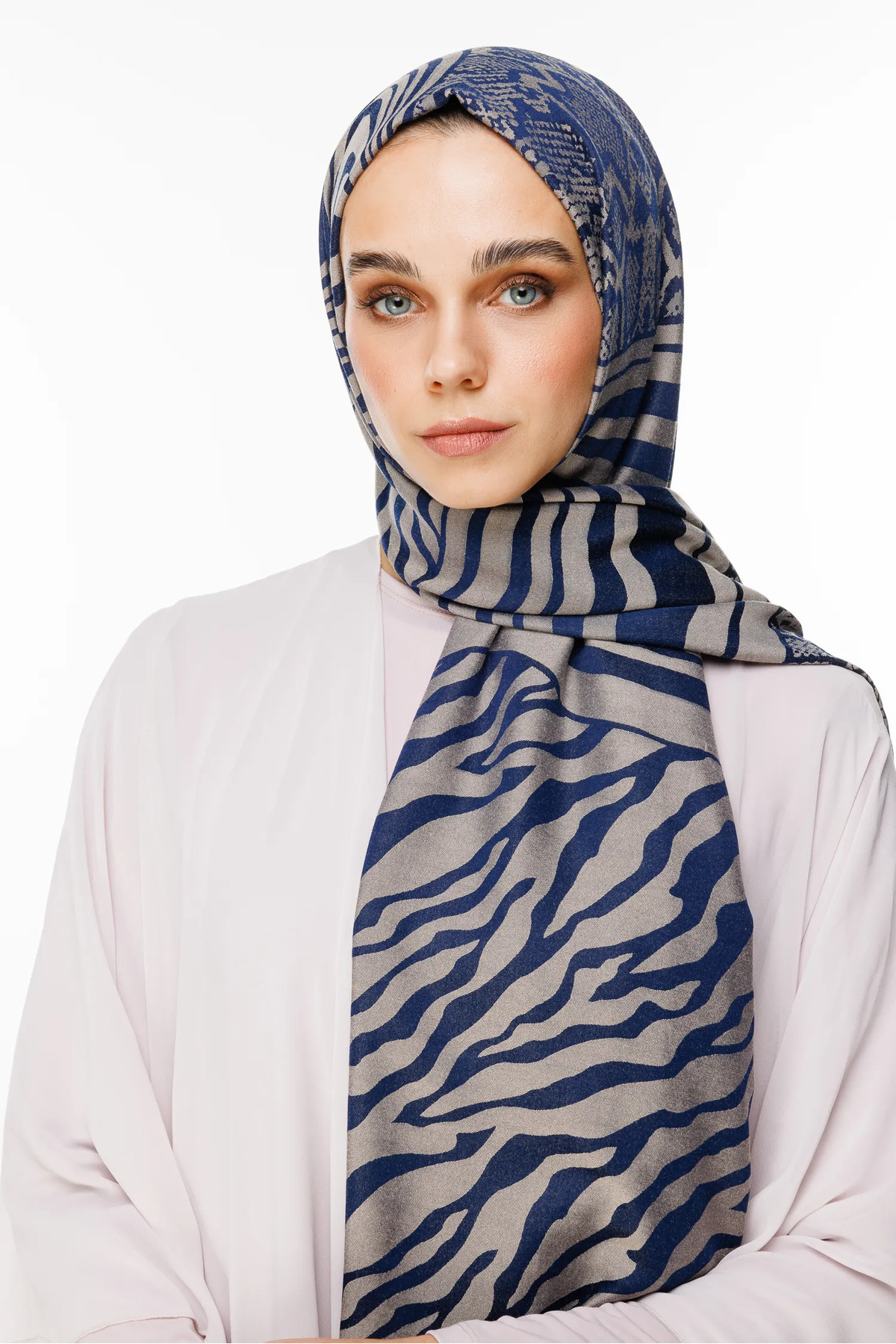 Riad Desen Çift Taraflı Şal Lacivert-Bej Riad Desen Çift Taraflı Şal Lacivert-Bej MRC009 75 x 195