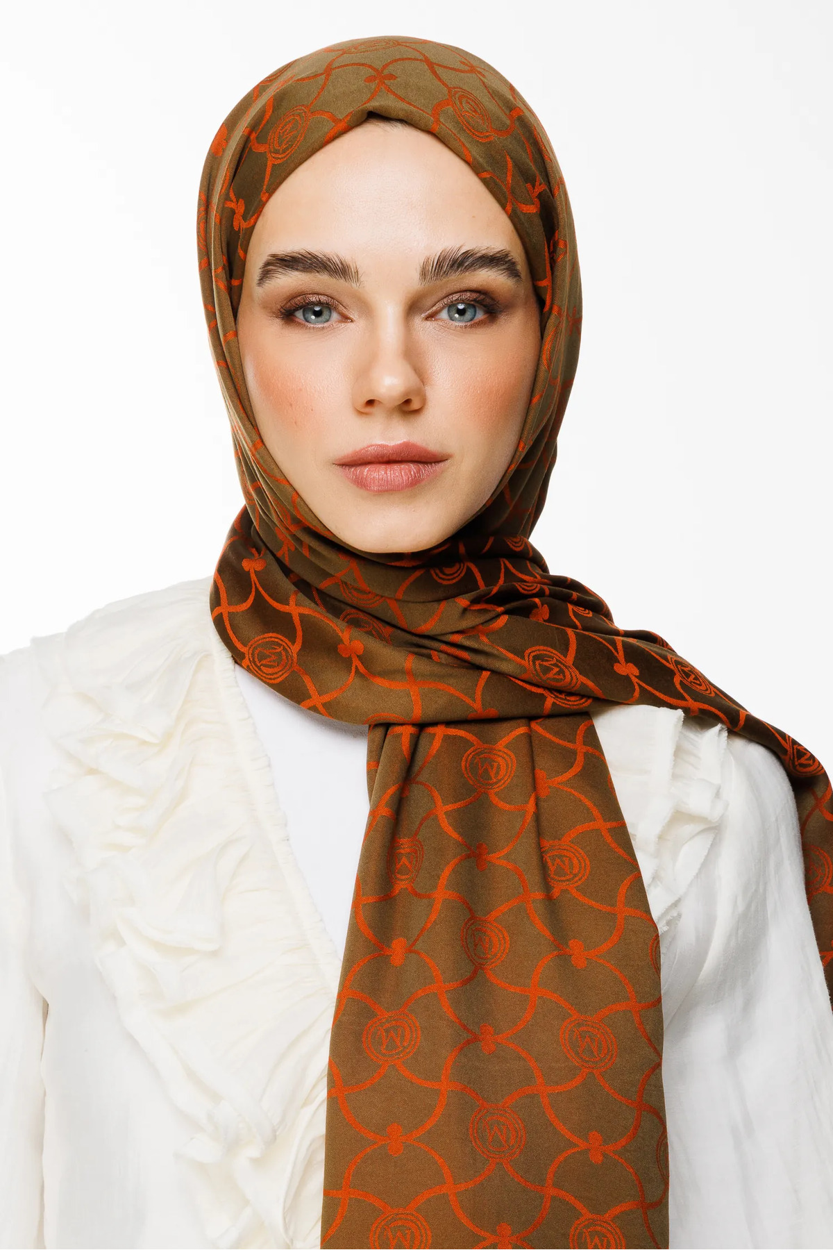 Marrakech Desen Çift Taraflı Şal Koyu Haki-Tarçın Marrakech Desen Çift Taraflı Şal Koyu Haki-Tarçın MRC005 75 x 195