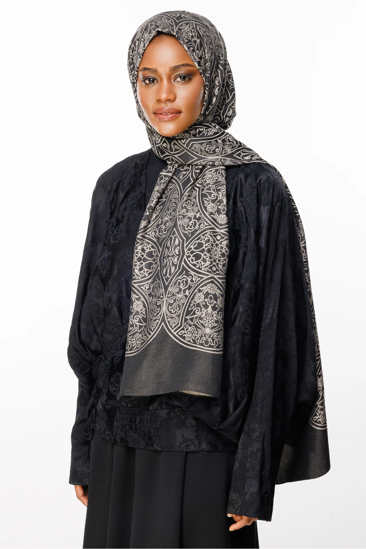 Morocco Desen Çift Taraflı Şal Mor Siyah Morocco Desen Çift Taraflı Şal Mor Siyah MRC010 75 x 195
